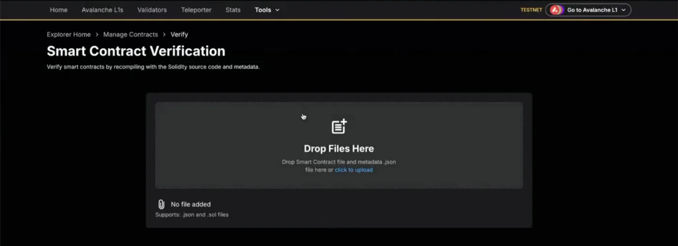 This document outlines the process of verifying a Smart Contract deployed on any Avalanche L1 using the official explorer.