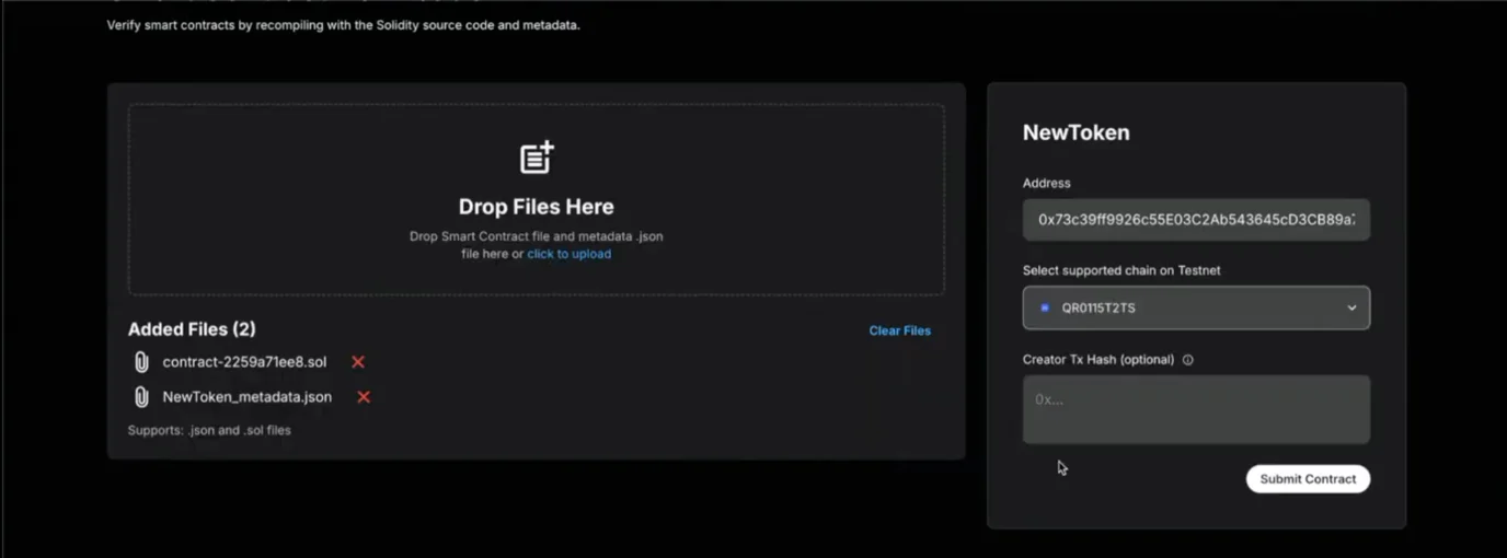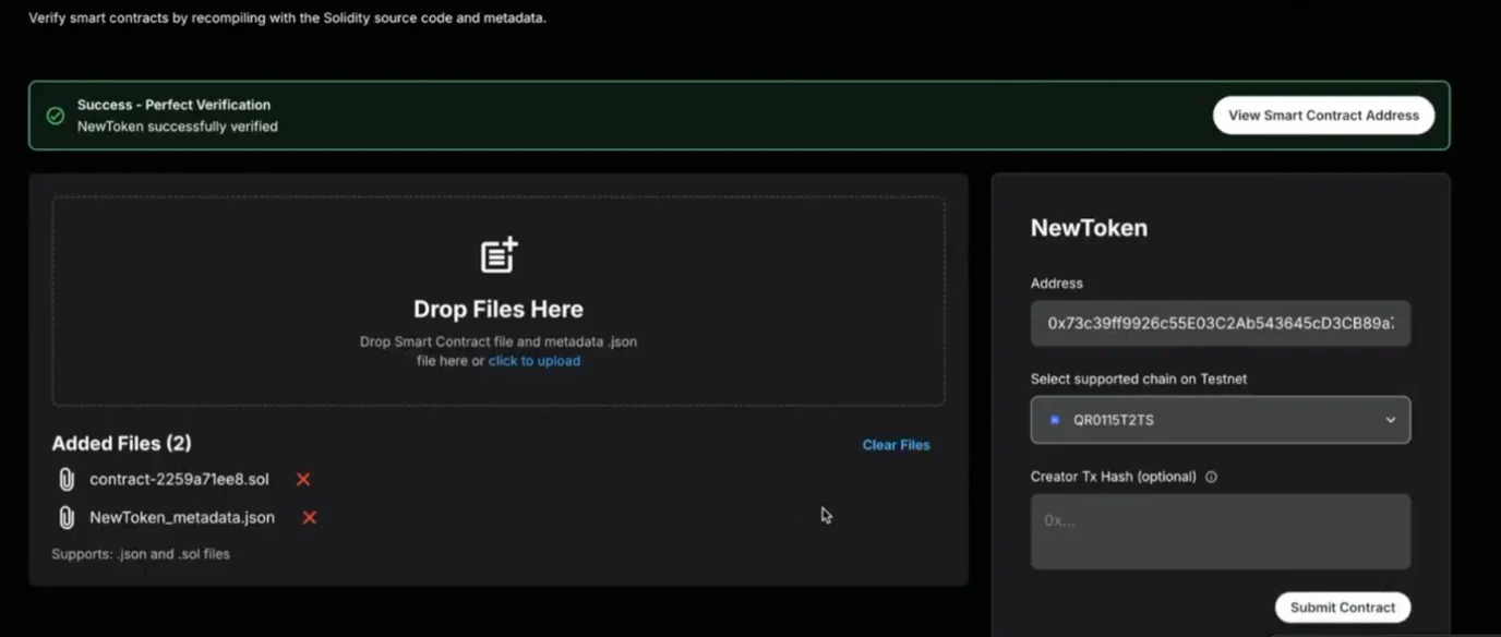 After submitting the contract for verification, your request will be processed shortly and you will see the below message.