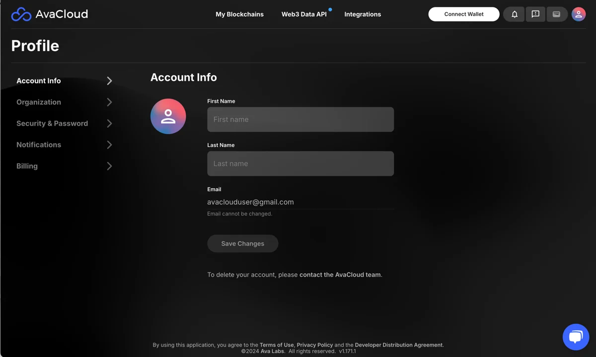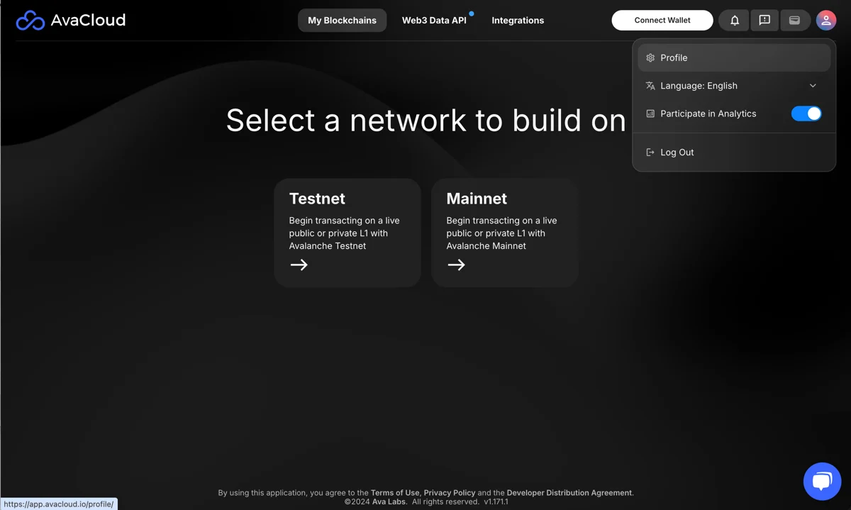 To view or update your profile settings, click your profile icon in the top right corner of the AvaCloud portal and select Profile from the dropdown menu.
