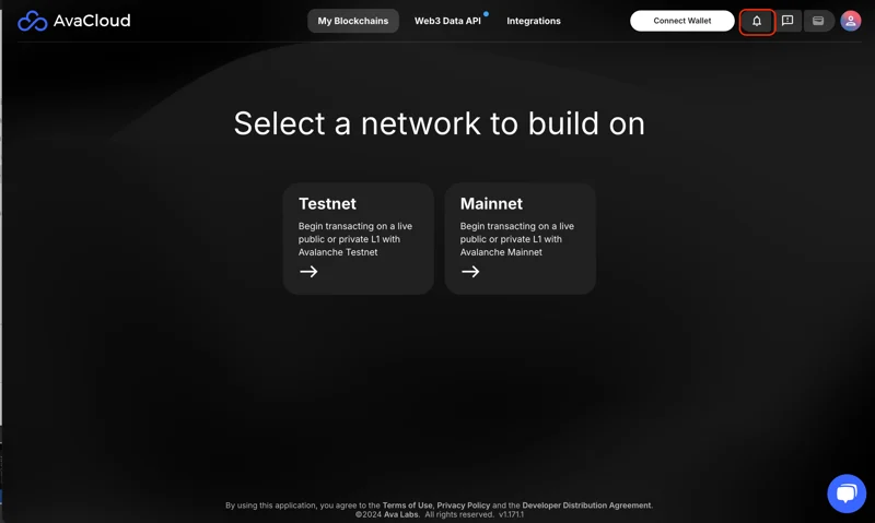 Notifications may include L1 deployment status, service announcements, platform updates, billing notices, and other essential account activity. This dedicated feed helps ensure you’re always aware of significant events as you manage your projects in AvaCloud.