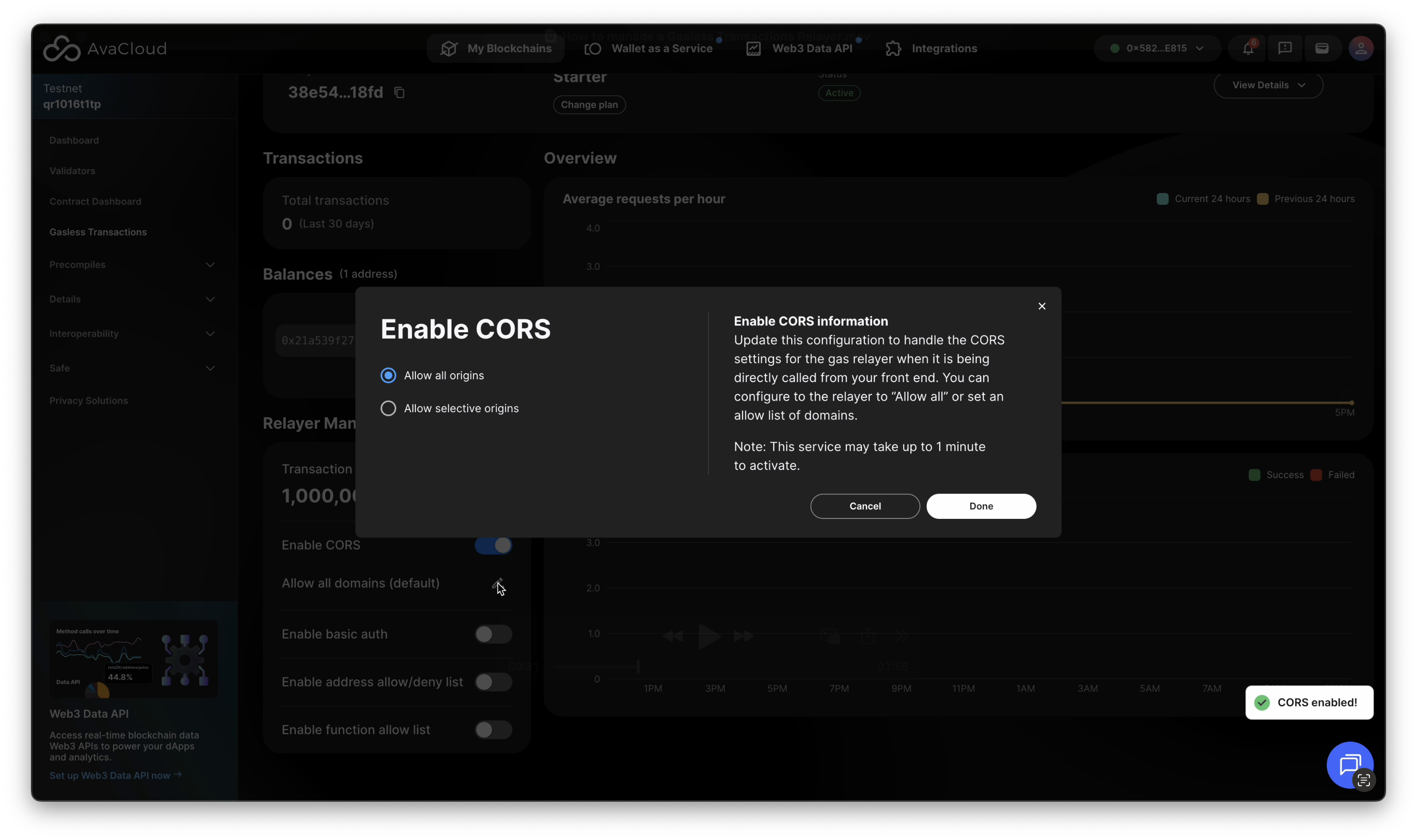 Update allowed origins and manage Cross-Origin Resource Sharing (CORS) settings to control who can interact with your relayer.