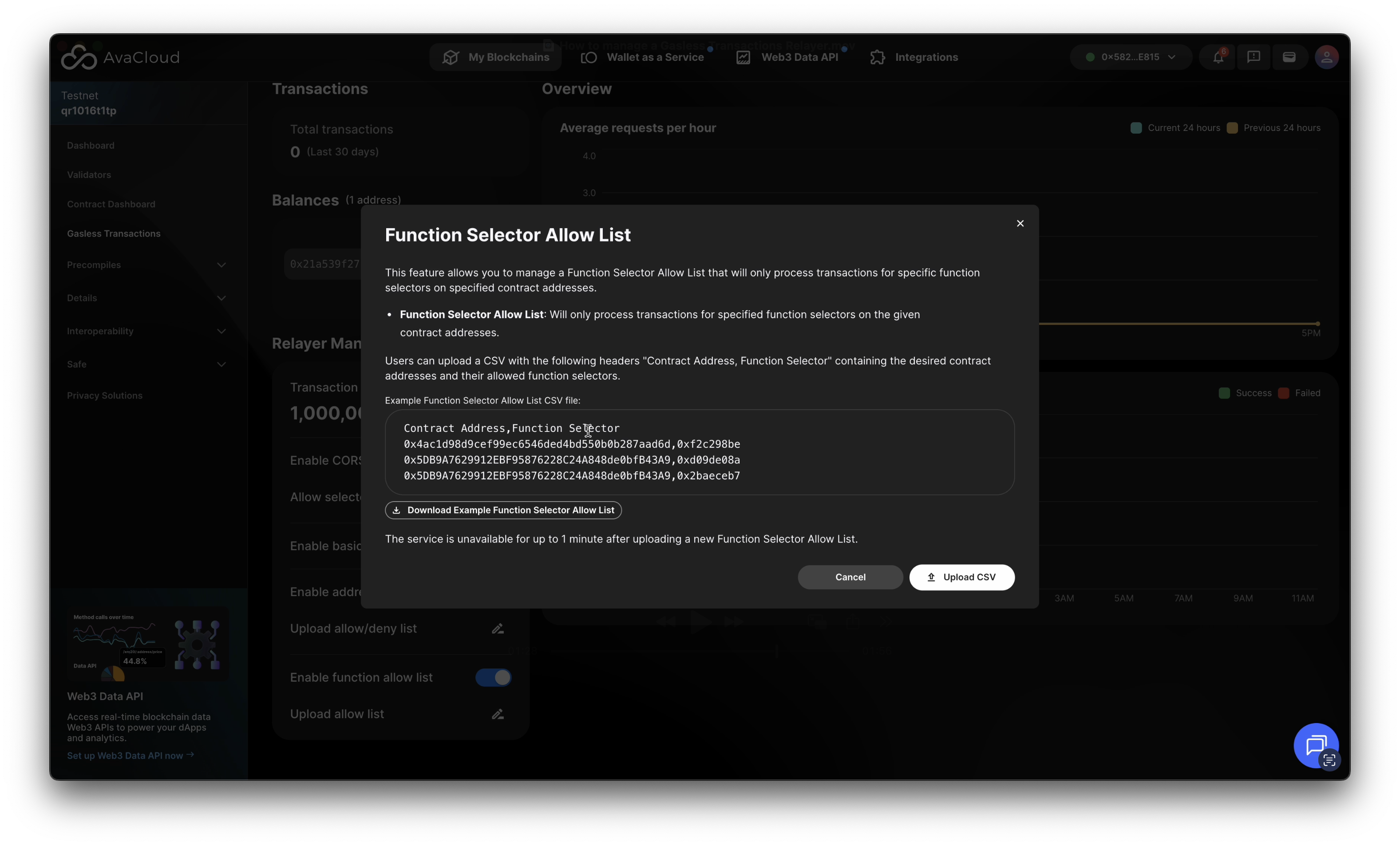 For integration details and developer resources, click the How to Use Relayers button at the top right of the dashboard. This directs you to the AvaCloud Gasless Relayer Developer Guide, also available here.