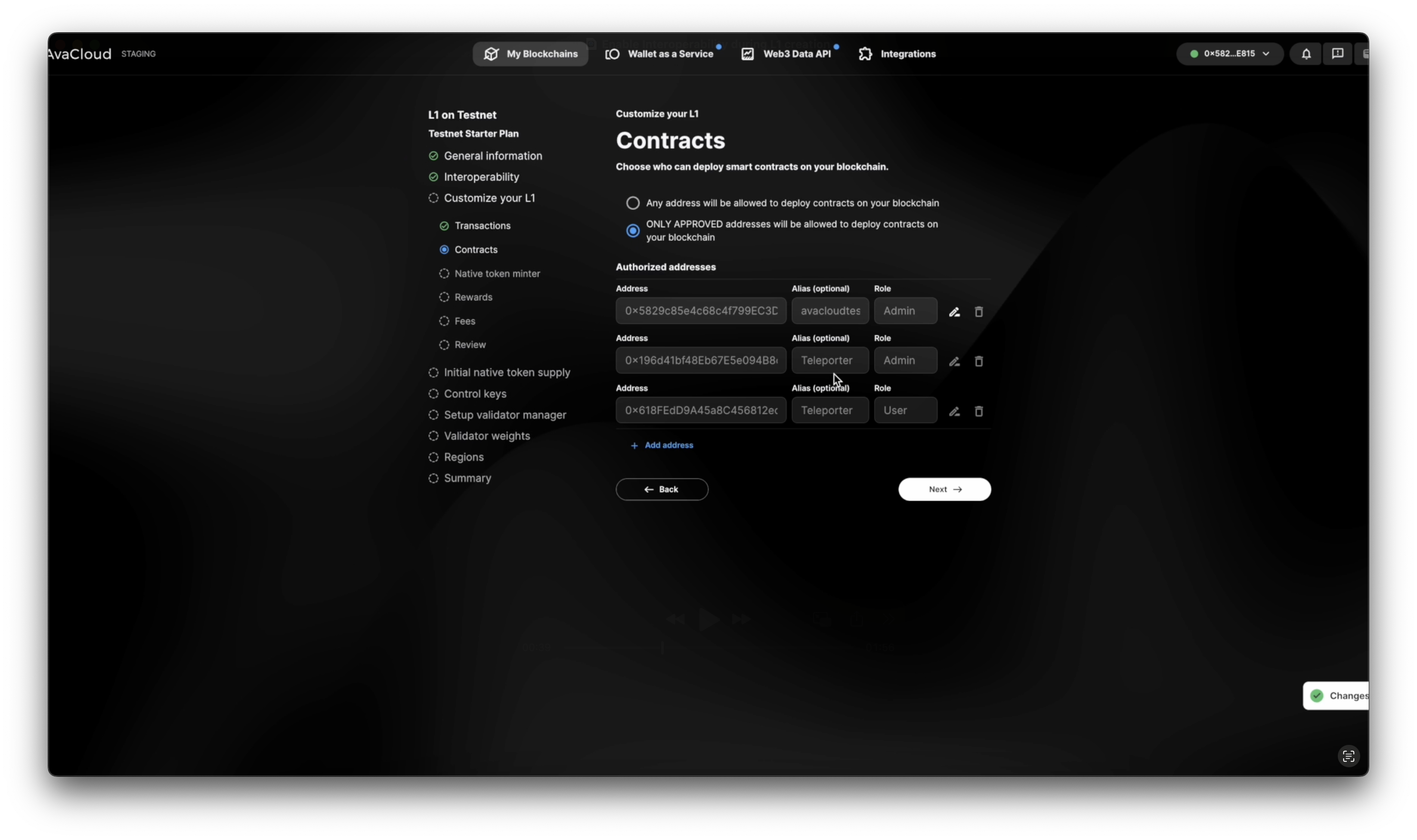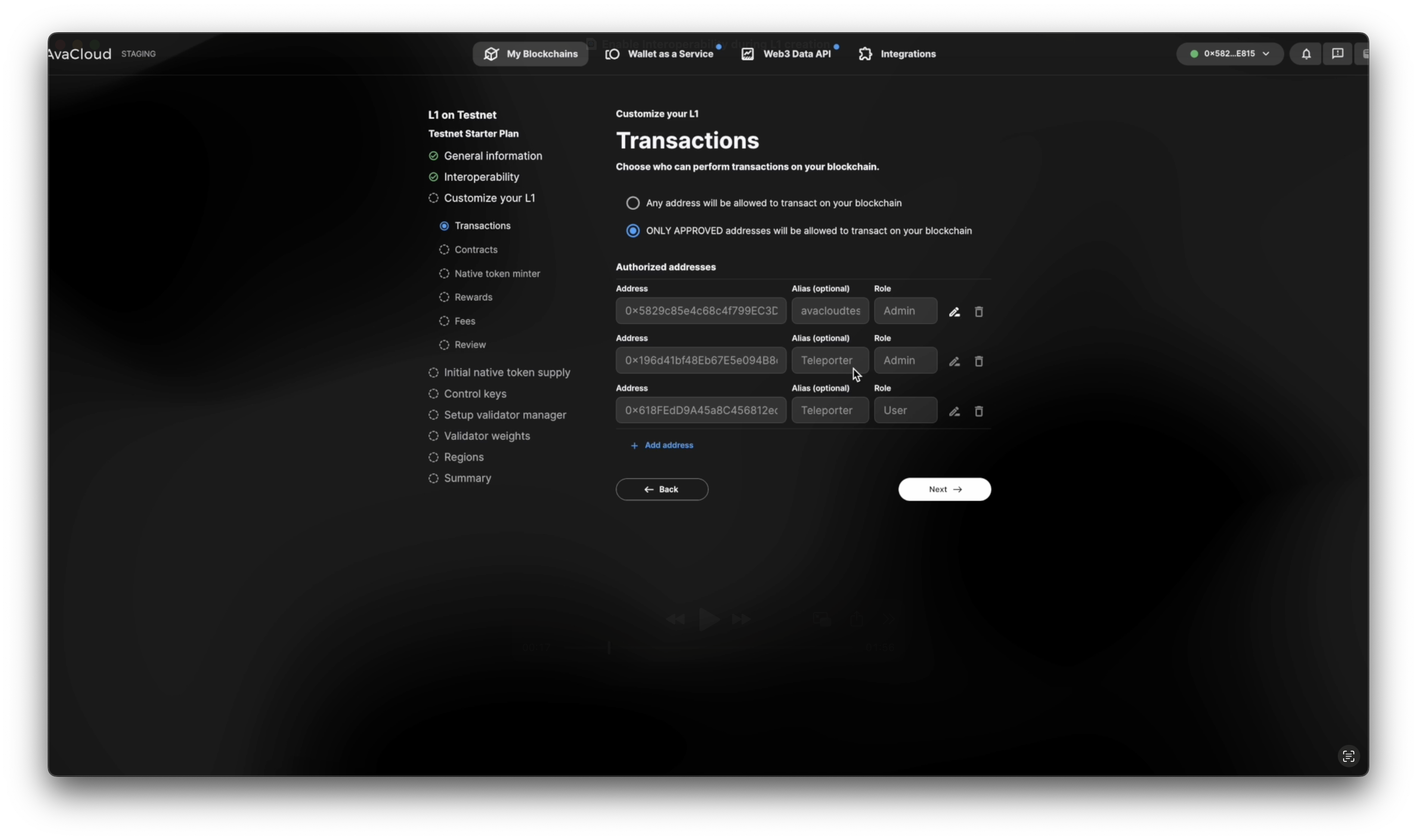 Similarly, you’ll approve transactions to add AWM relayer addresses to the relevant allowlist (if this precompile isn’t enabled, this step is skipped).