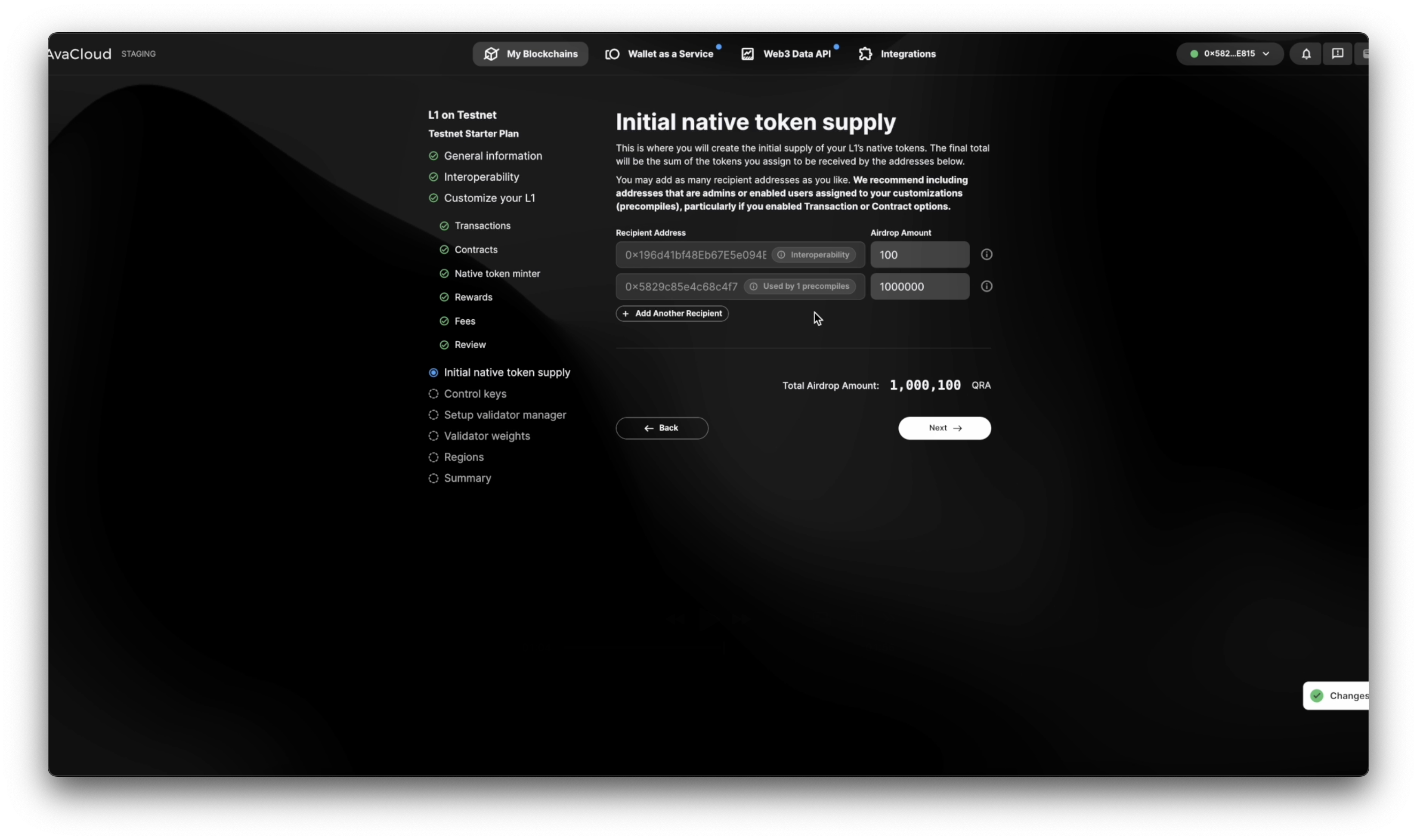 The Interoperability address is automatically added to your airdrop recipients list so it receives an initial funding allocation.