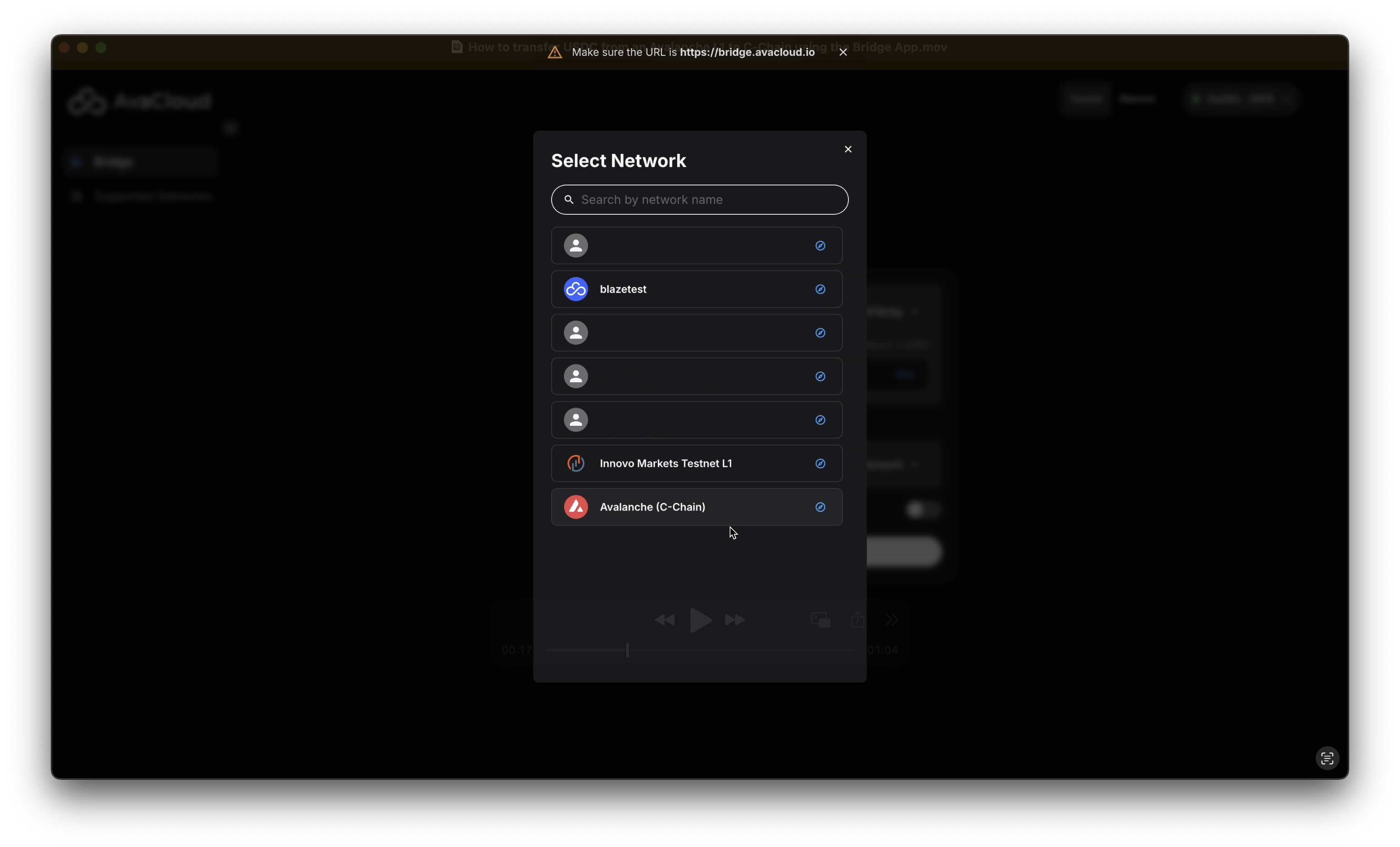 Tosection, clickSelect Networkand chooseAvalanche C-Chainas the destination.