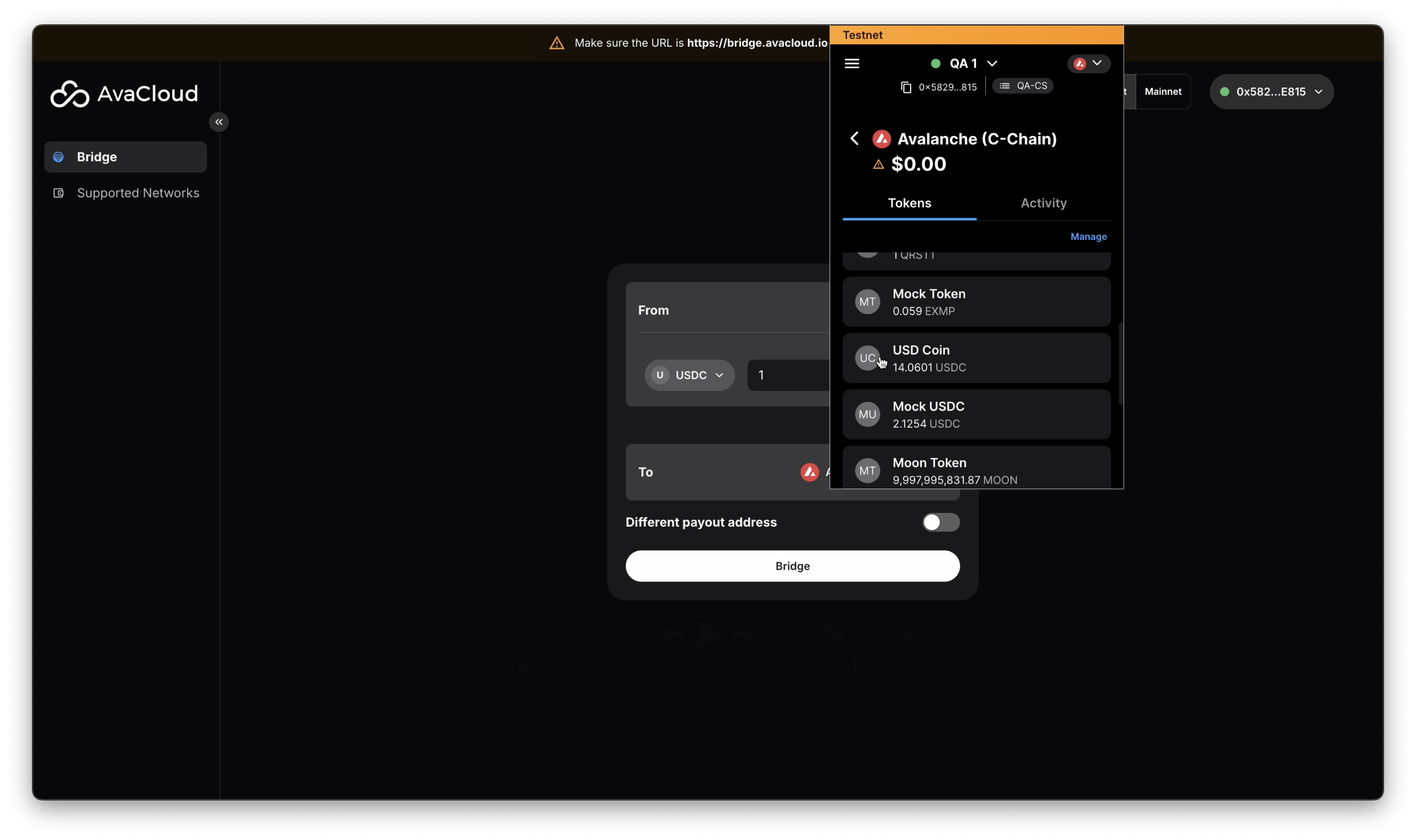 In addition, the transferred USDC should be visible in the wallet on the Avalanche C-Chain.