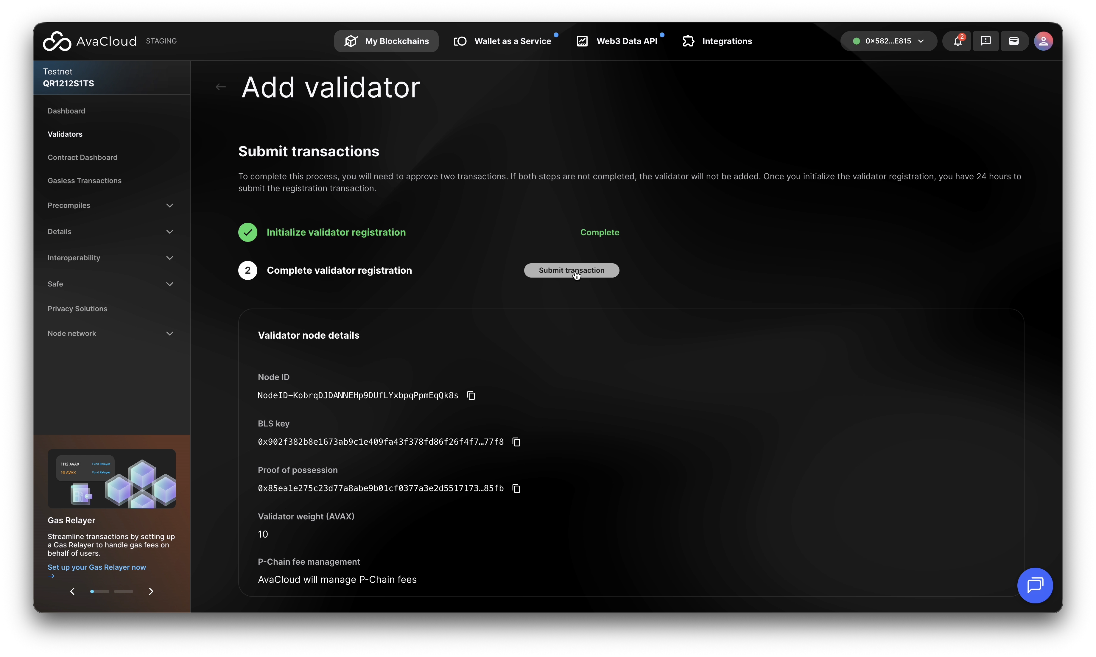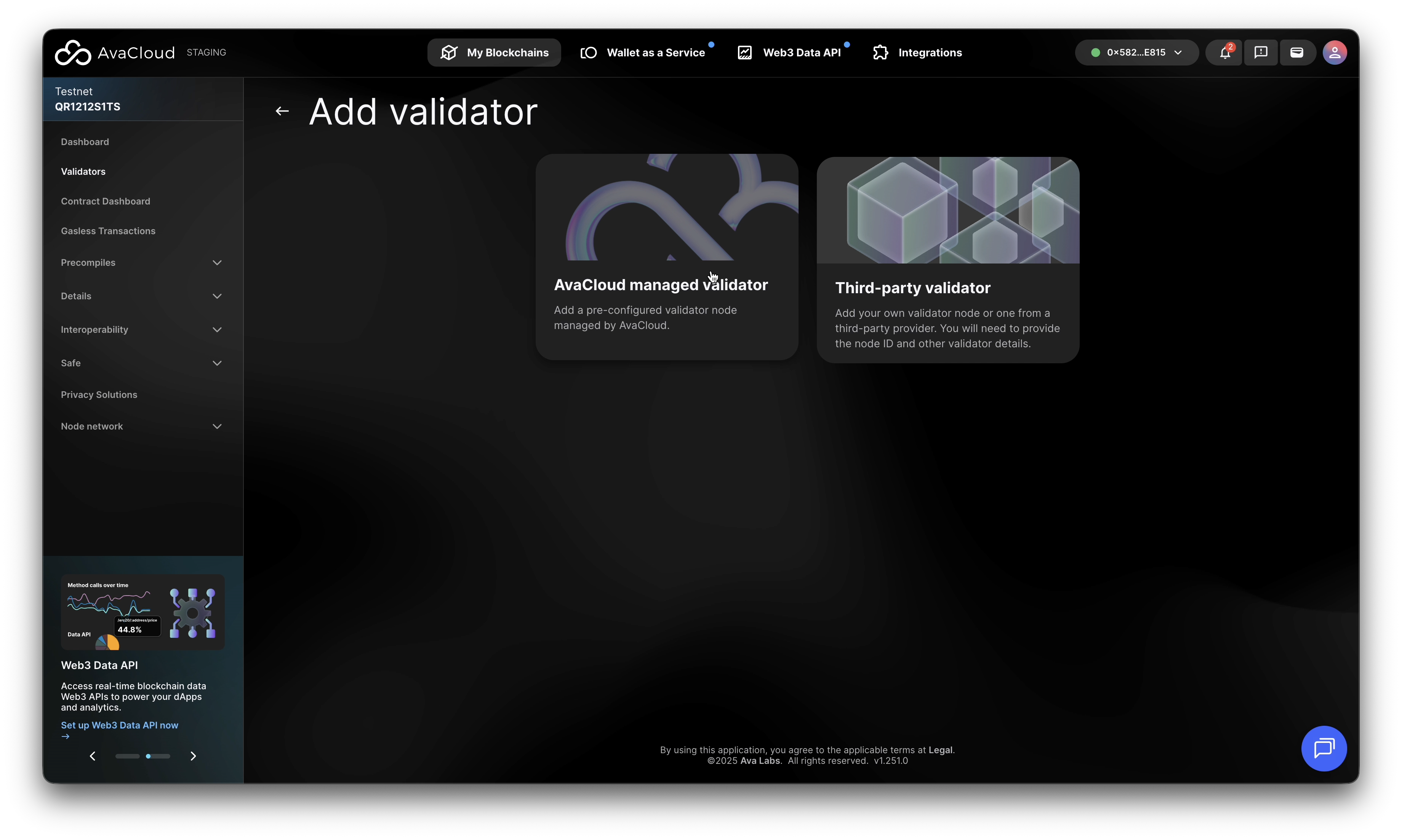 Third-Party Validator: You provide the Node ID and validator details. The overall process is similar to managed validators.