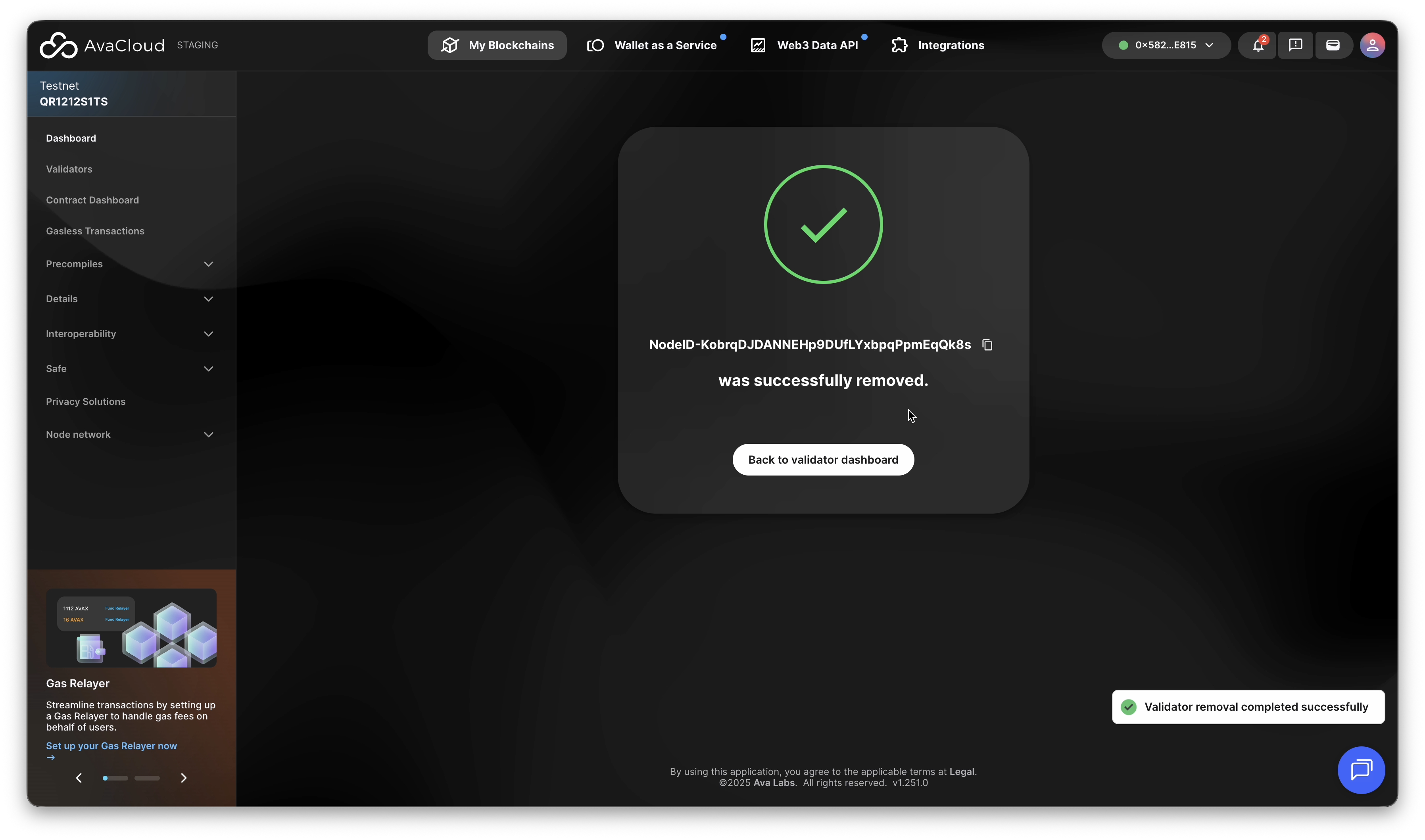 Complete validator removal process.