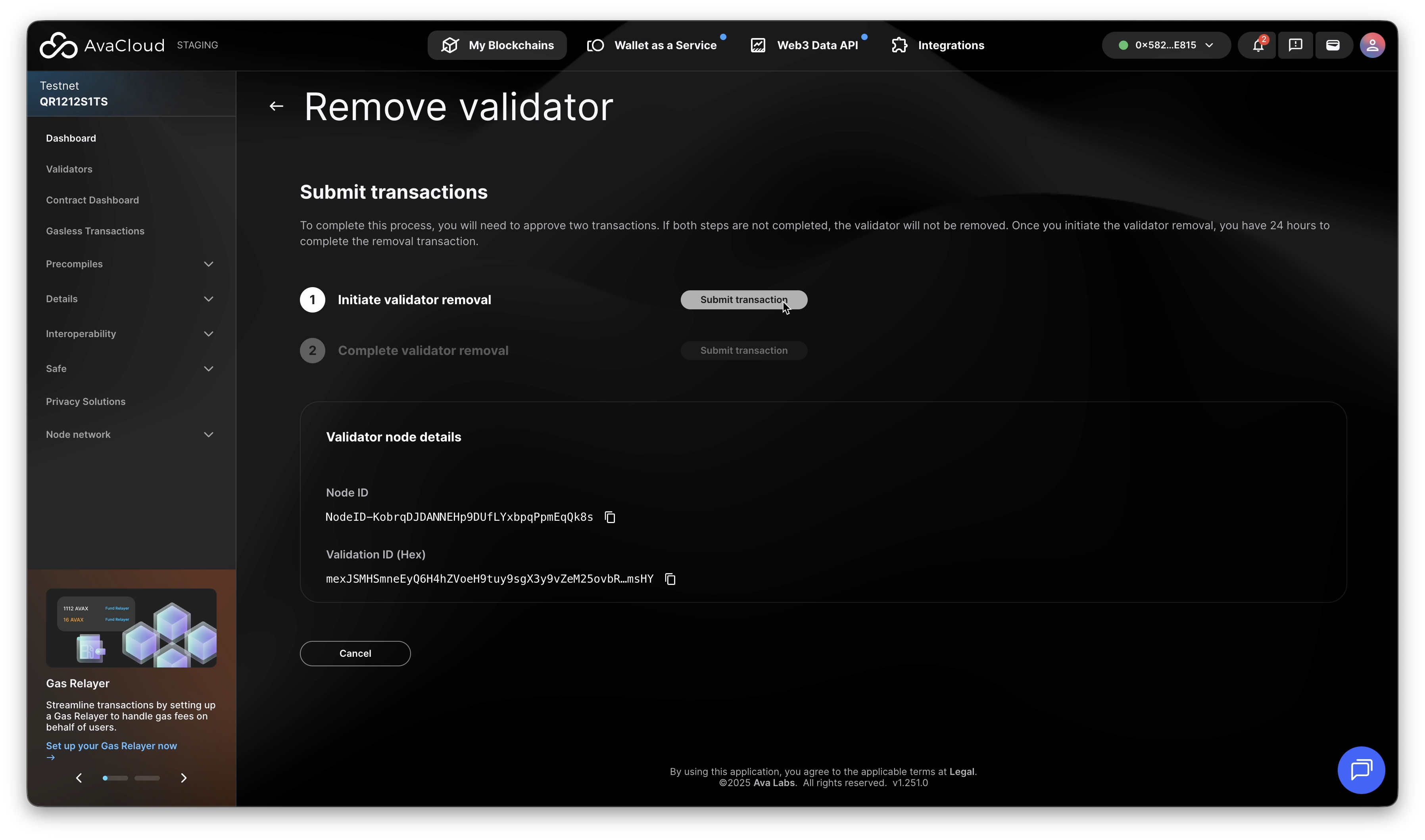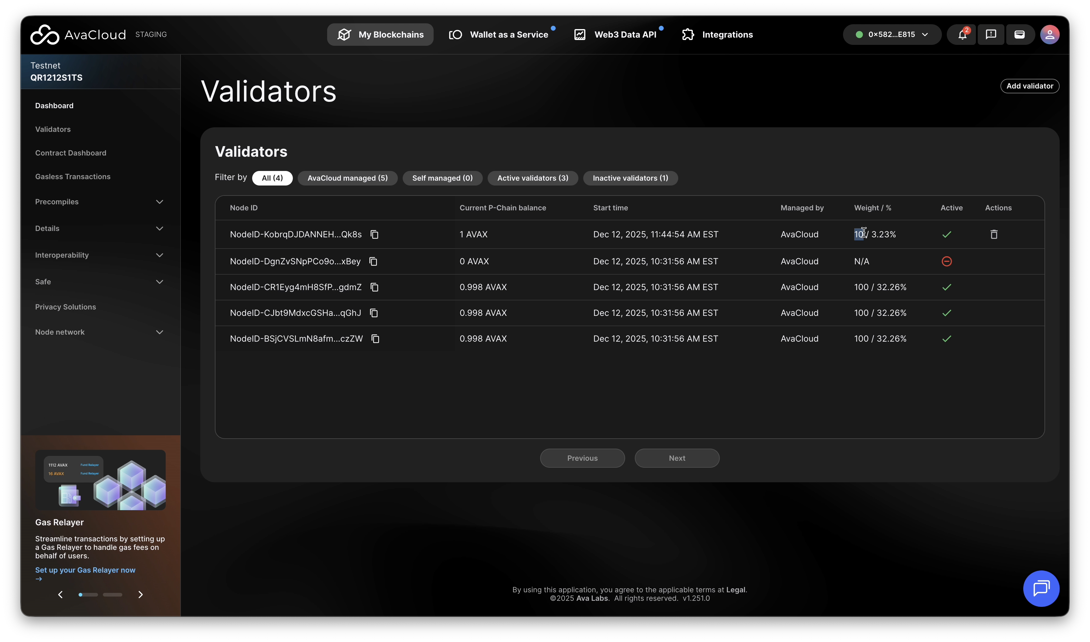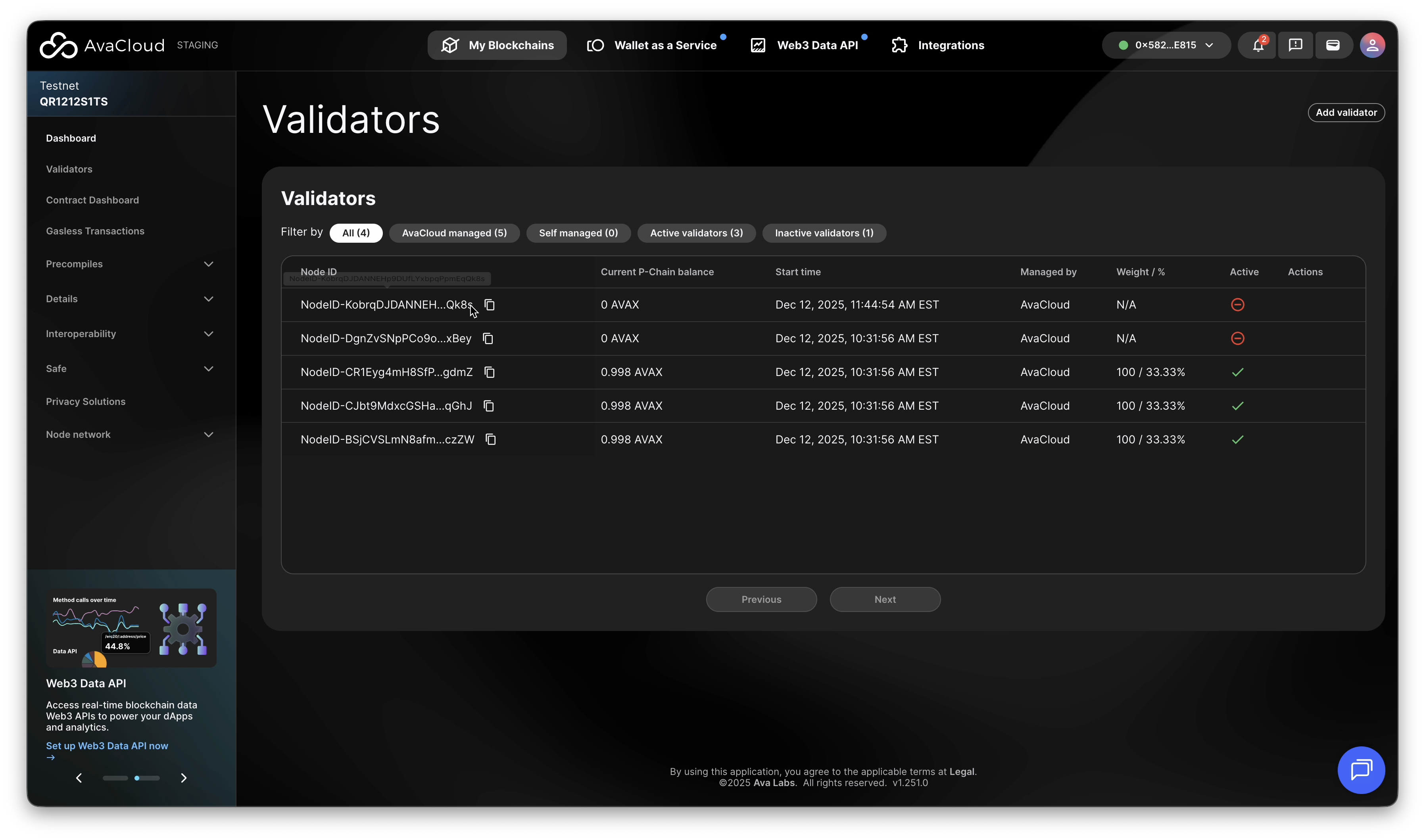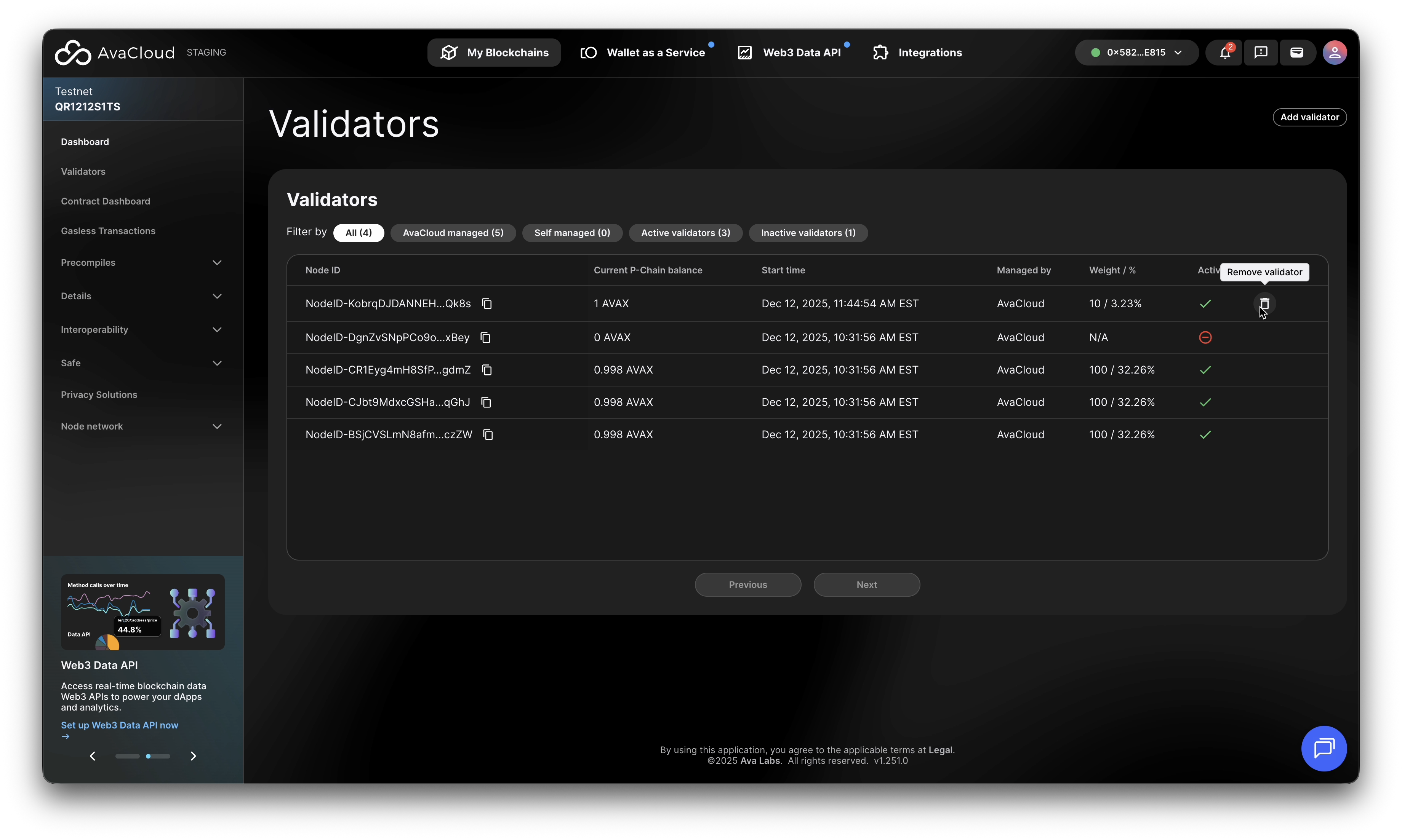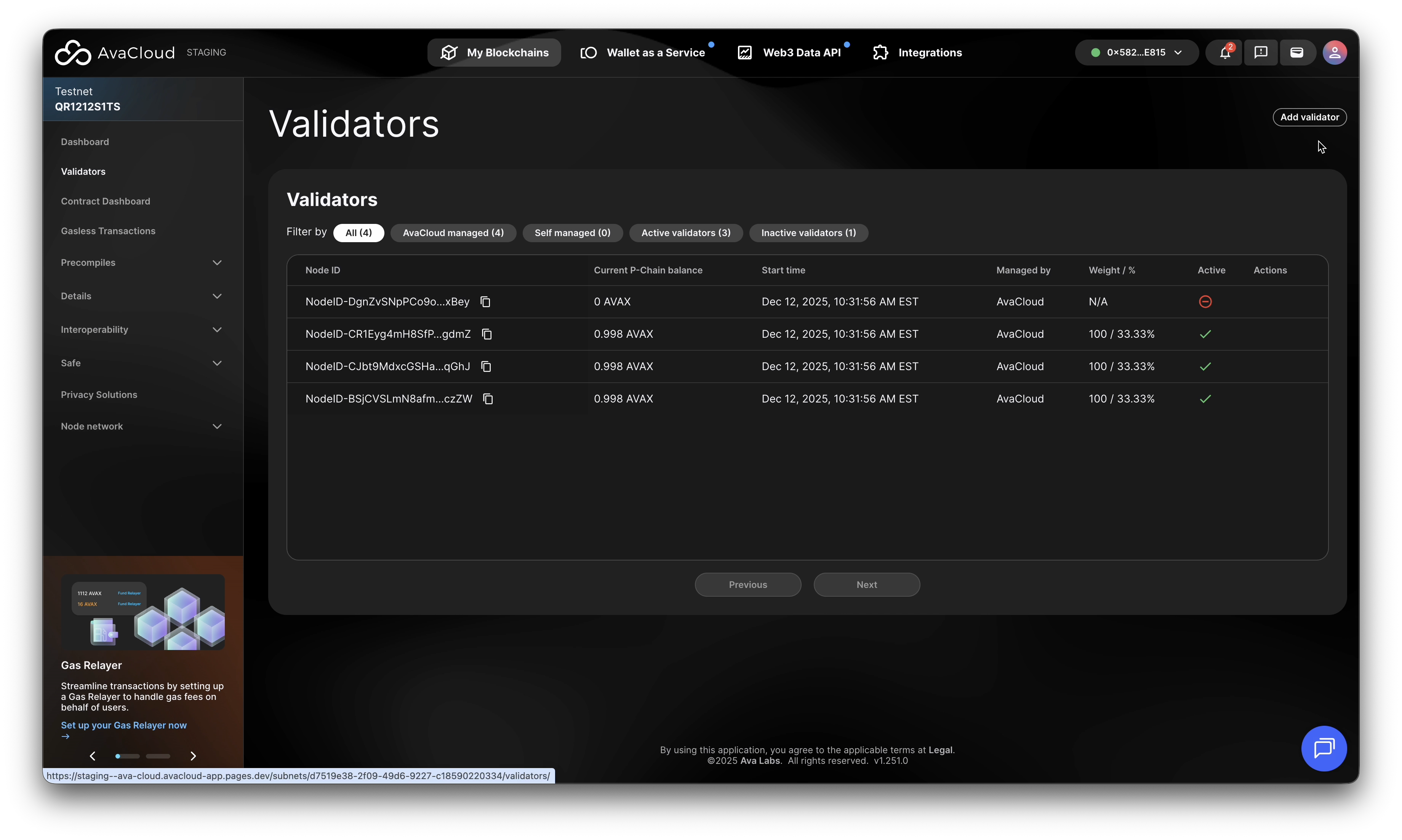 - In AvaCloud Portal, go to your L1’s Validators tab.