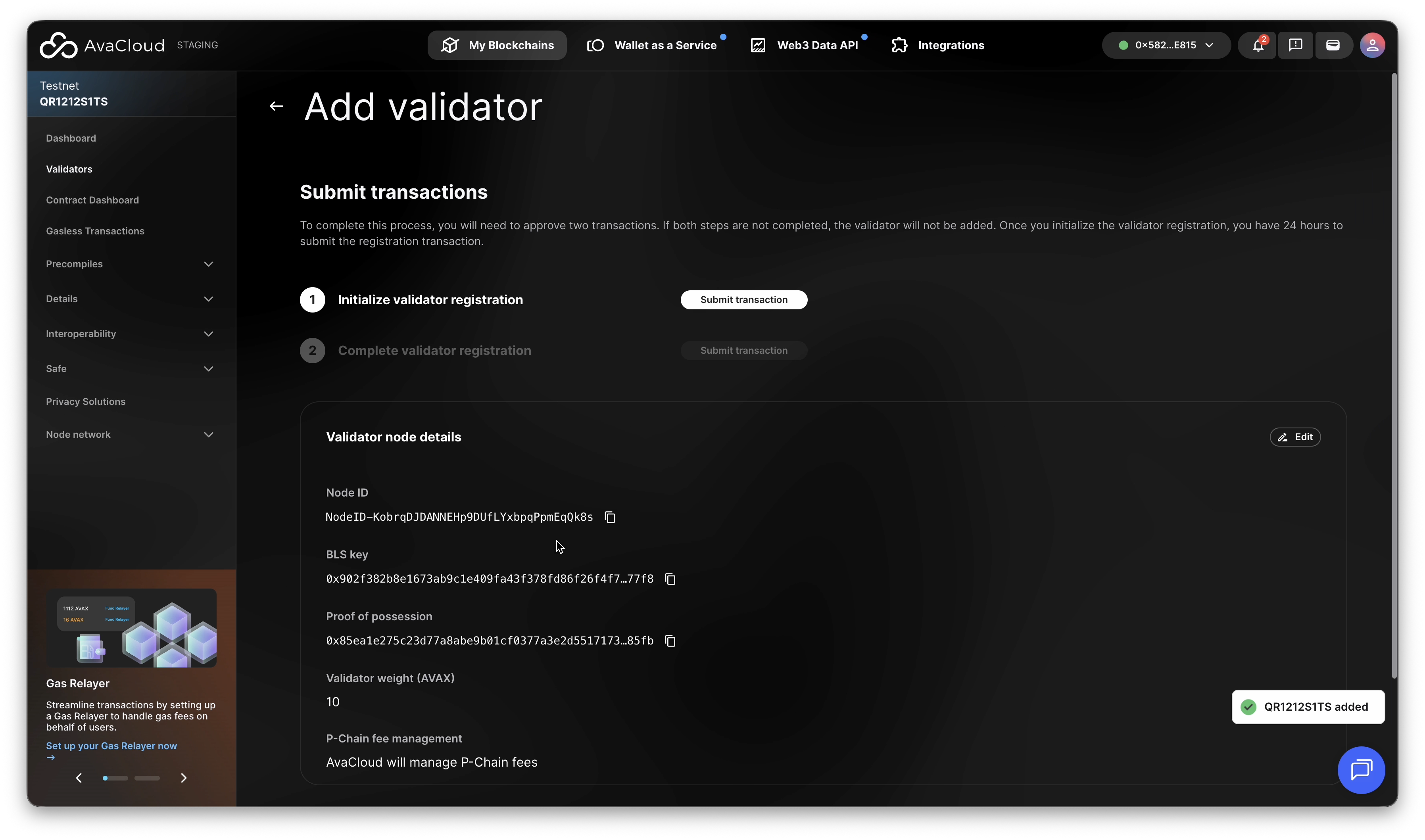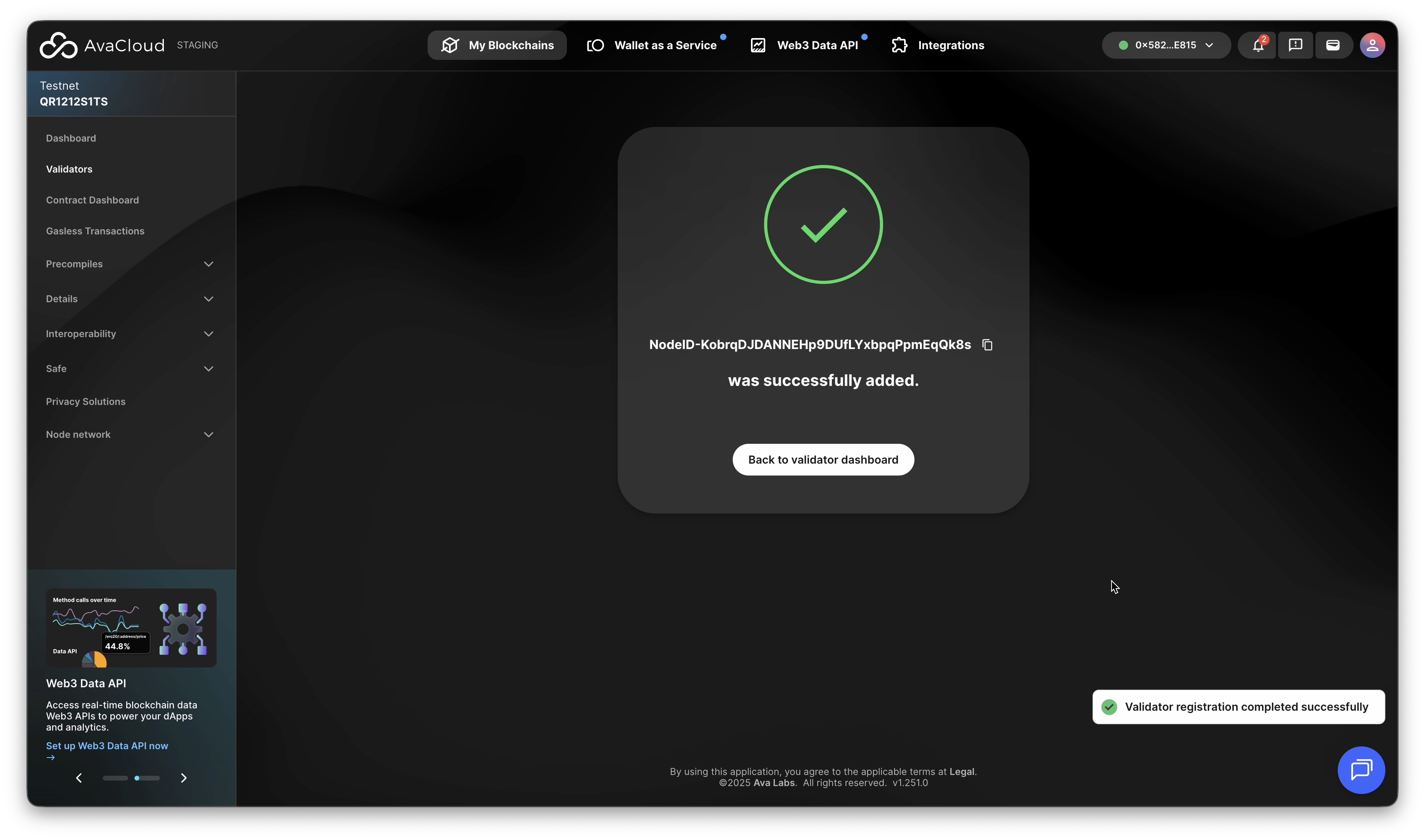The new validator will now appear in your validator list.