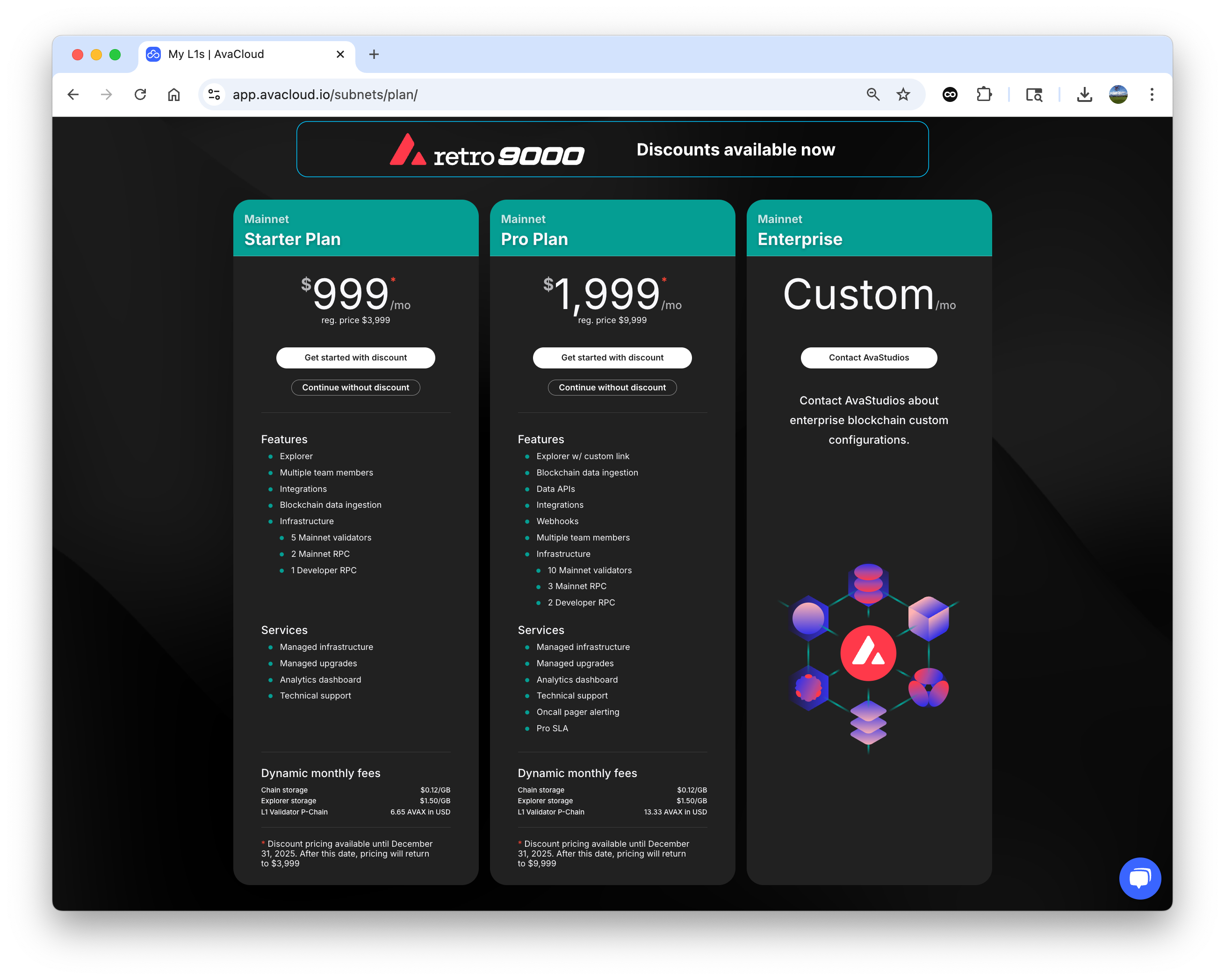 This guide will help you launch an Avalanche L1 using the Starter or Pro plan with Advanced Setup, on either Testnet or Mainnet.