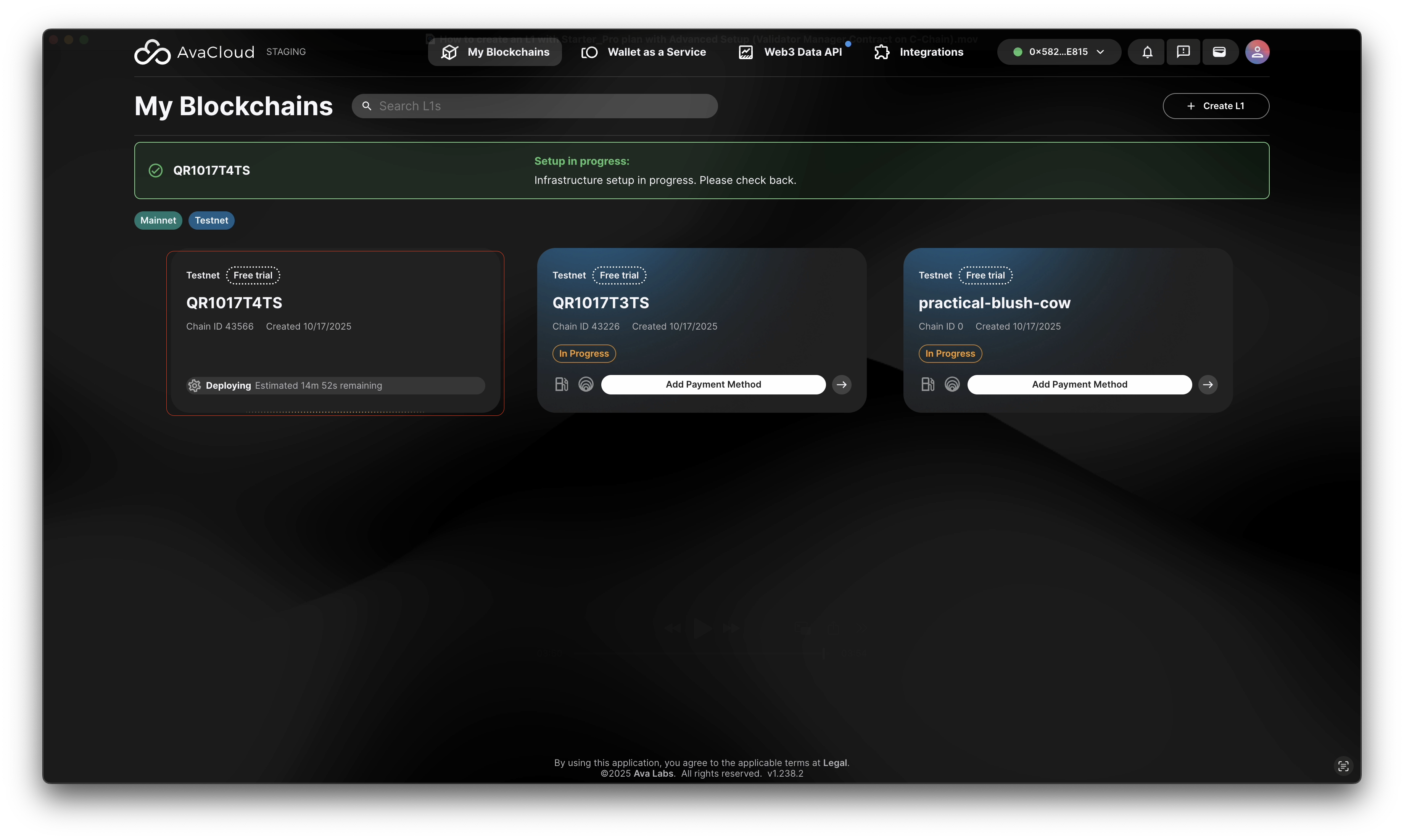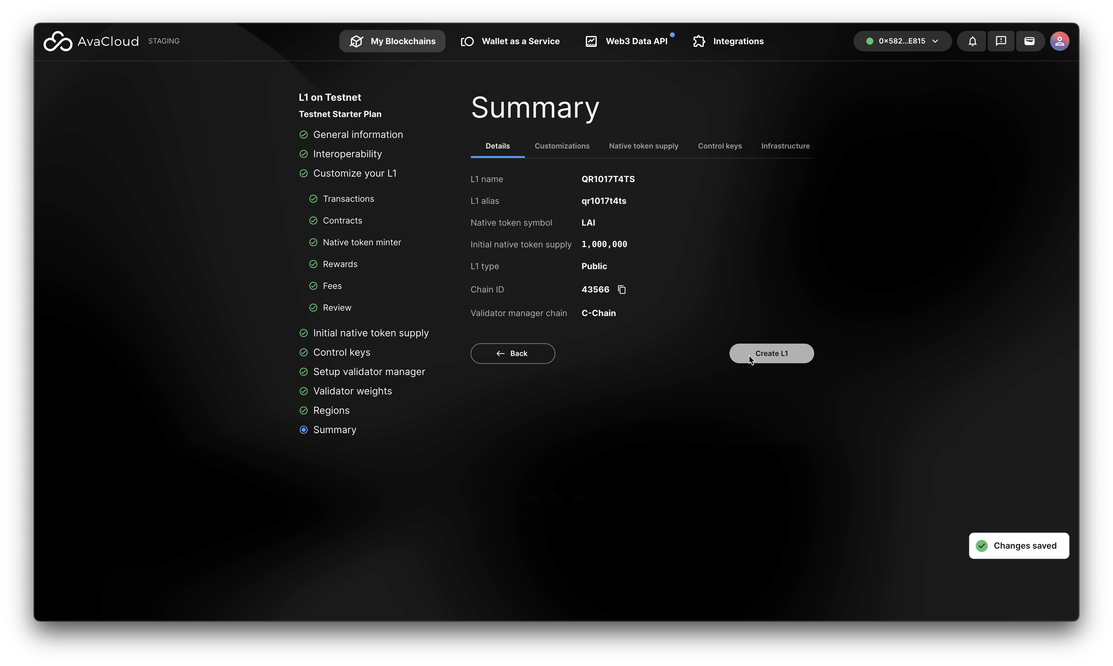 - Click “Create L1” to start deployment.