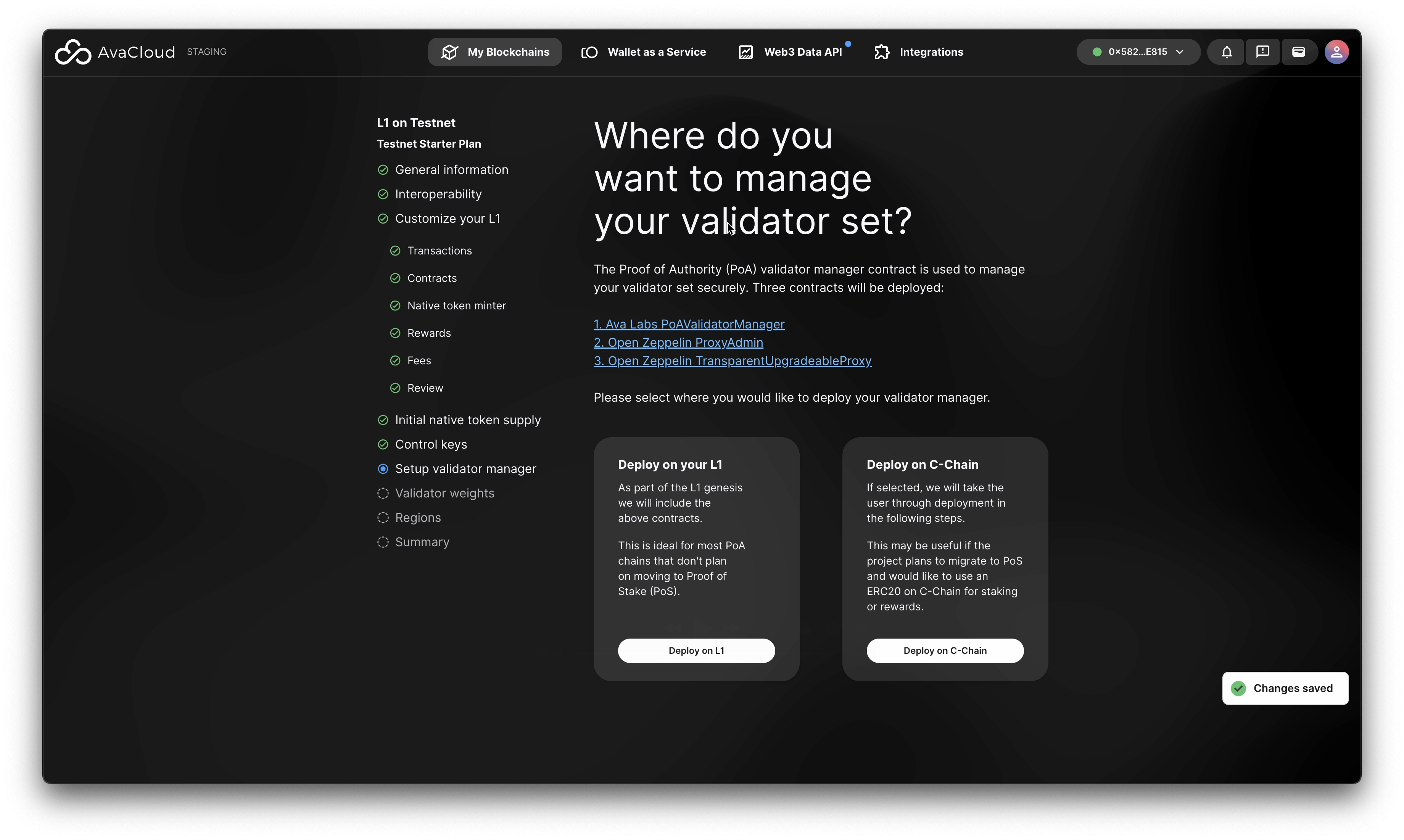 - Go to the L1 creation page in the AvaCloud Portal by clicking on