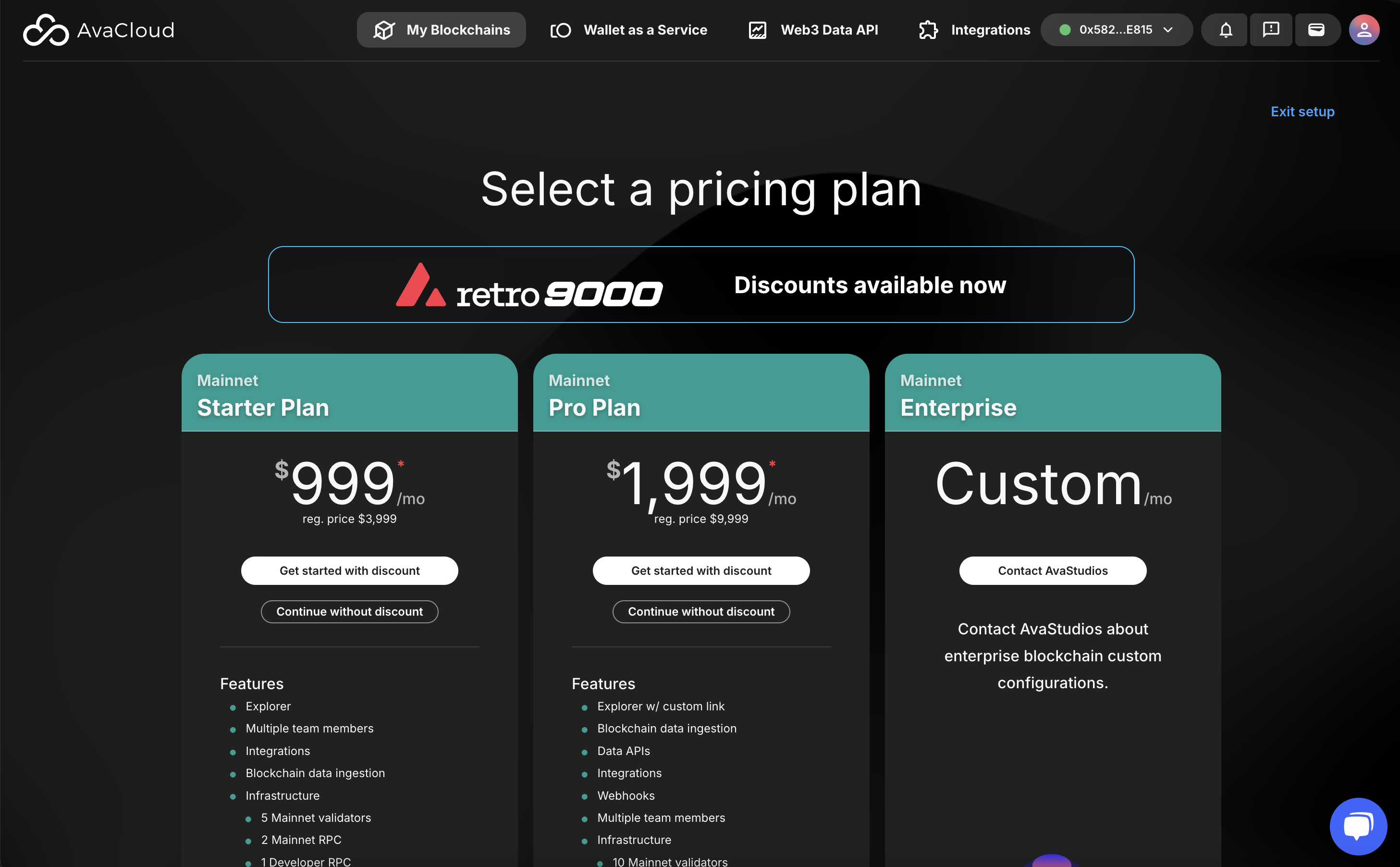 In addition to the Starter and Pro plans, AvaCloud offers an Enterprise plan for both Testnet and Mainnet deployments.