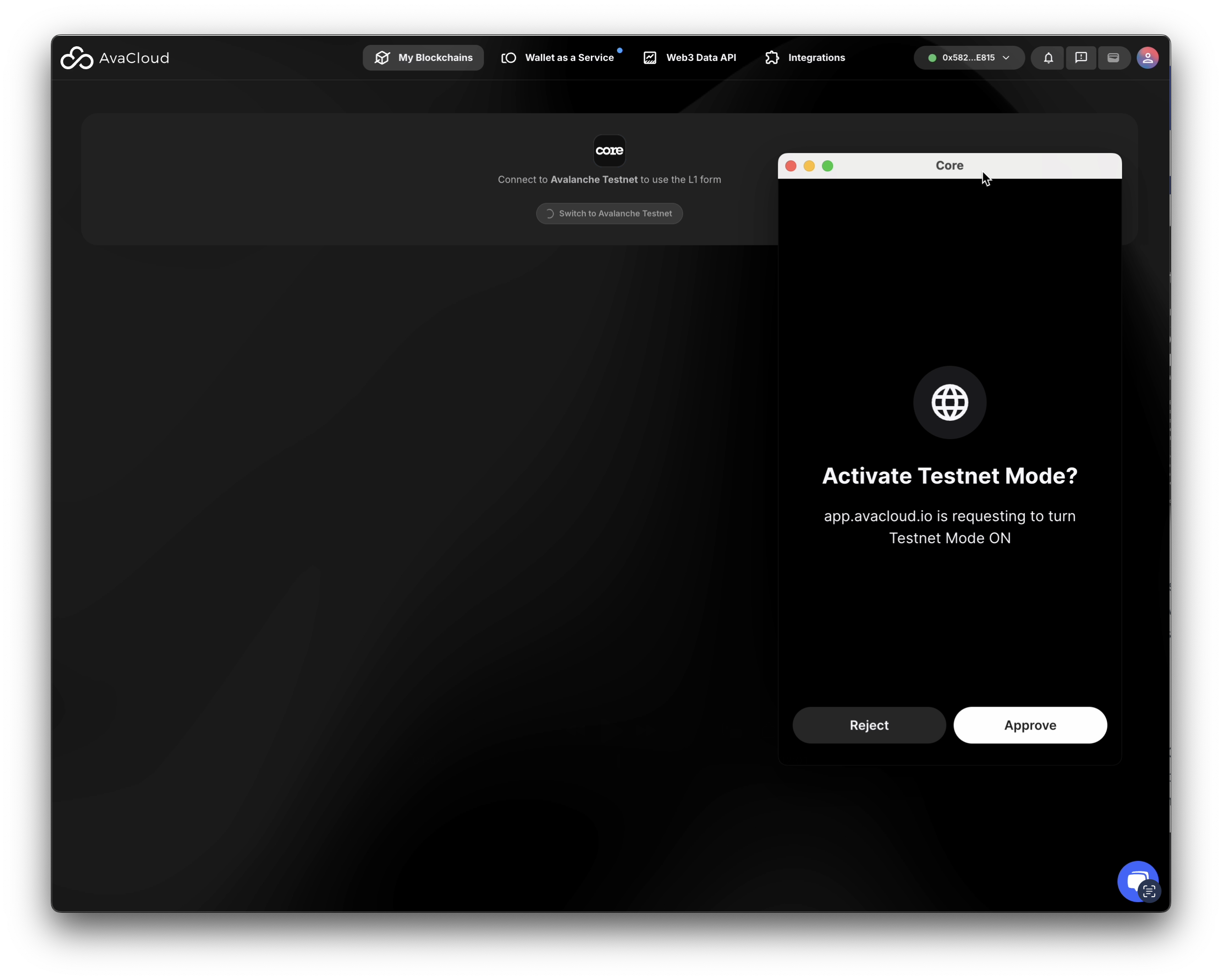- Make sure you are connected to the Avalanche Testnet before proceeding.
