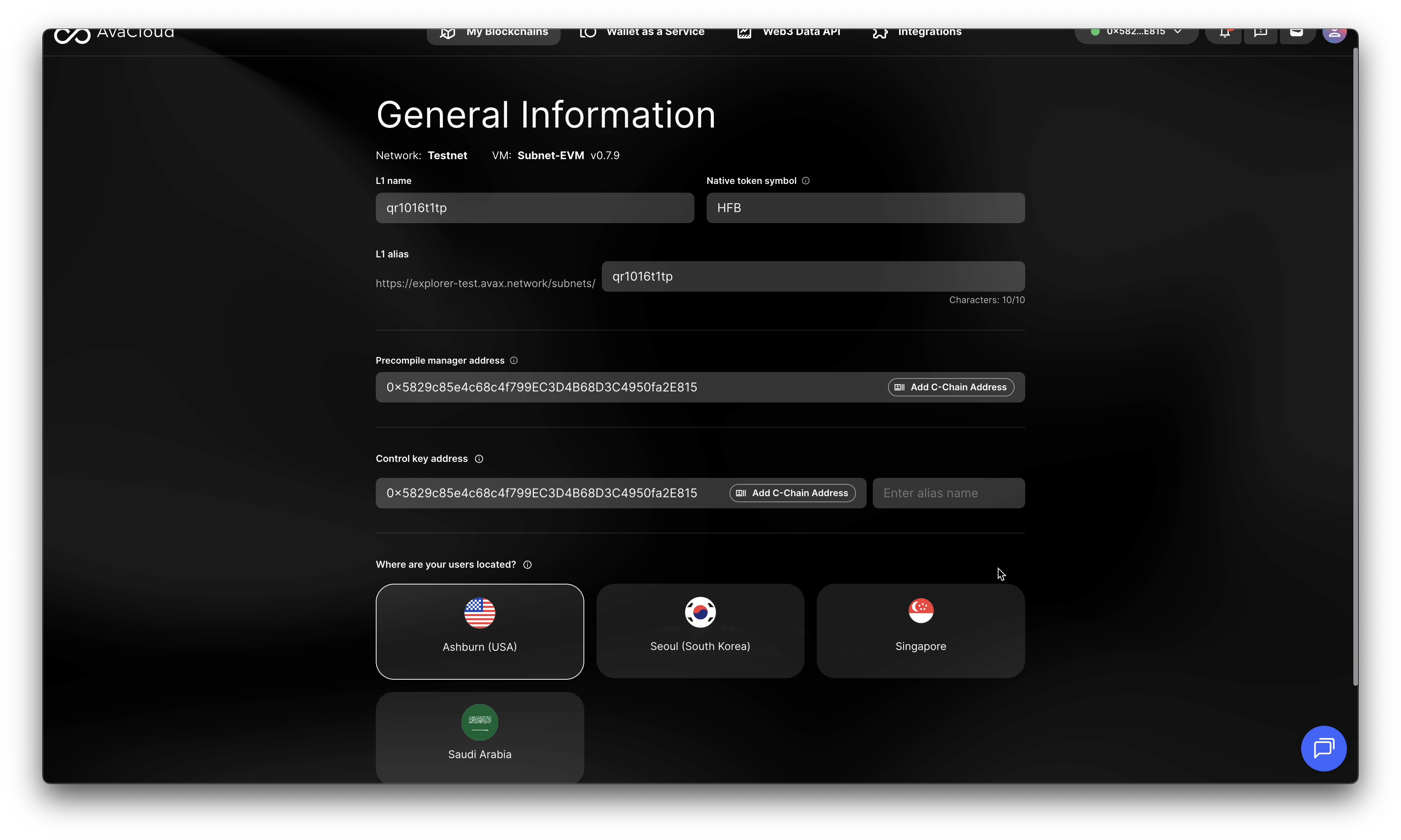 - User location (more options, such as EU, are available for Mainnet L1s)