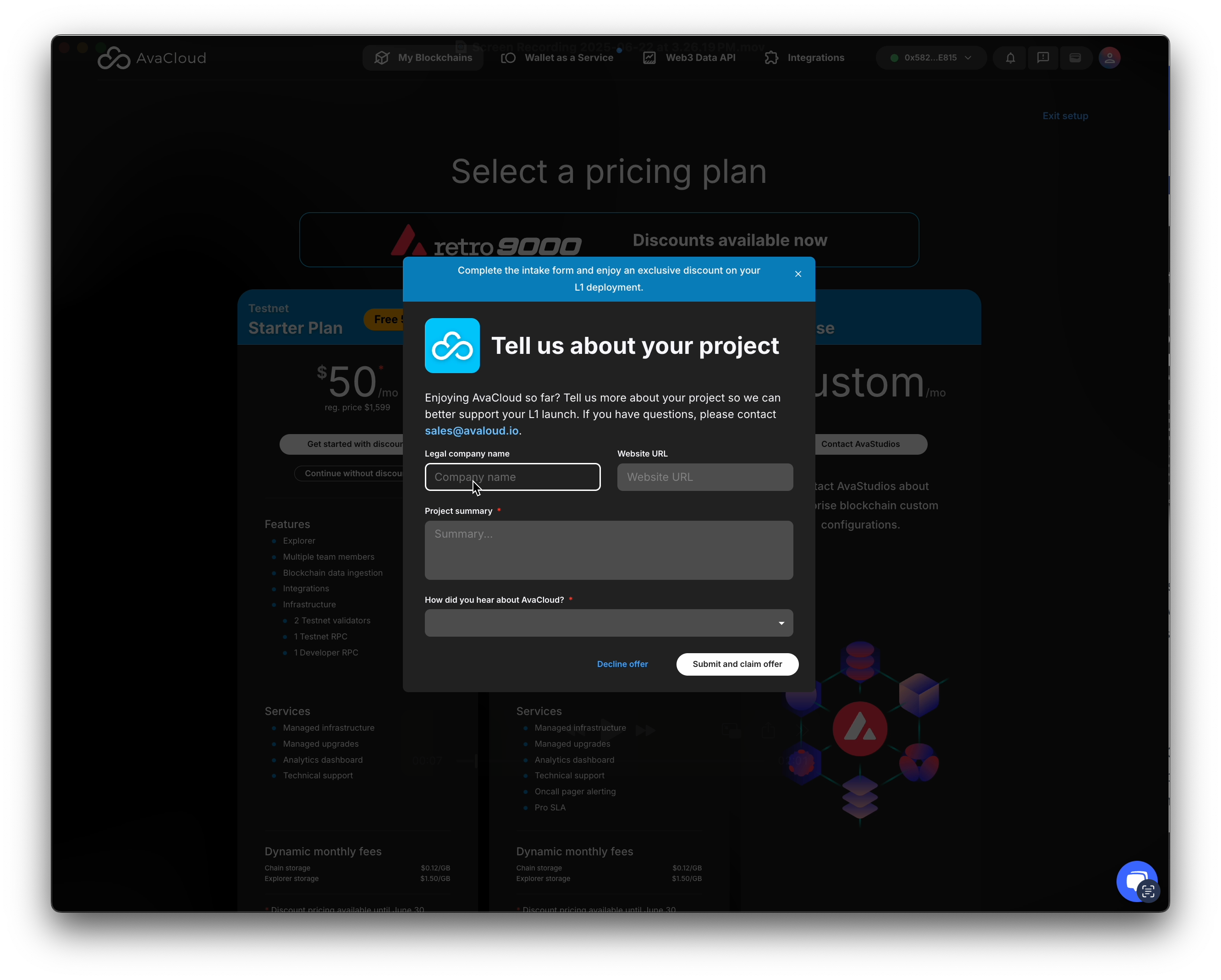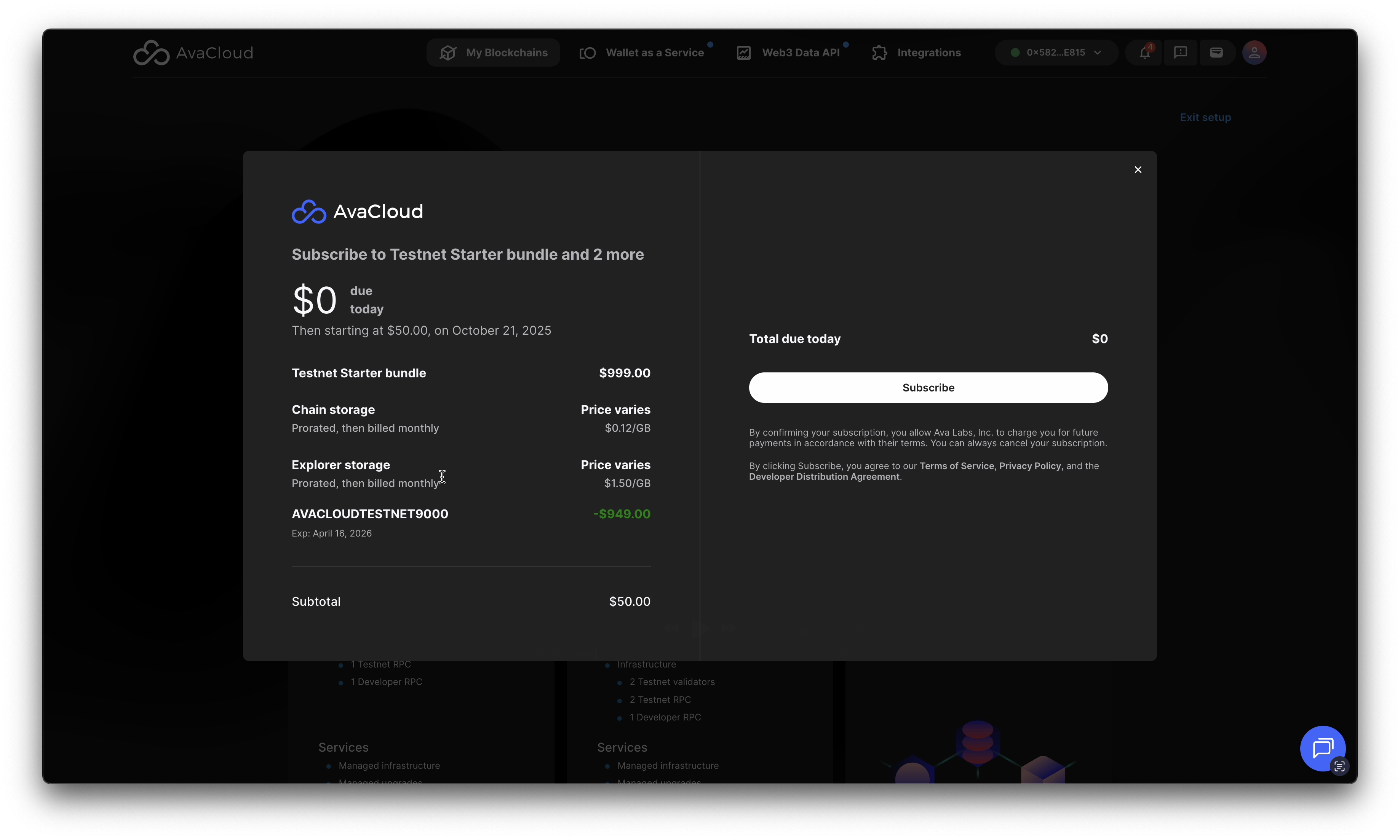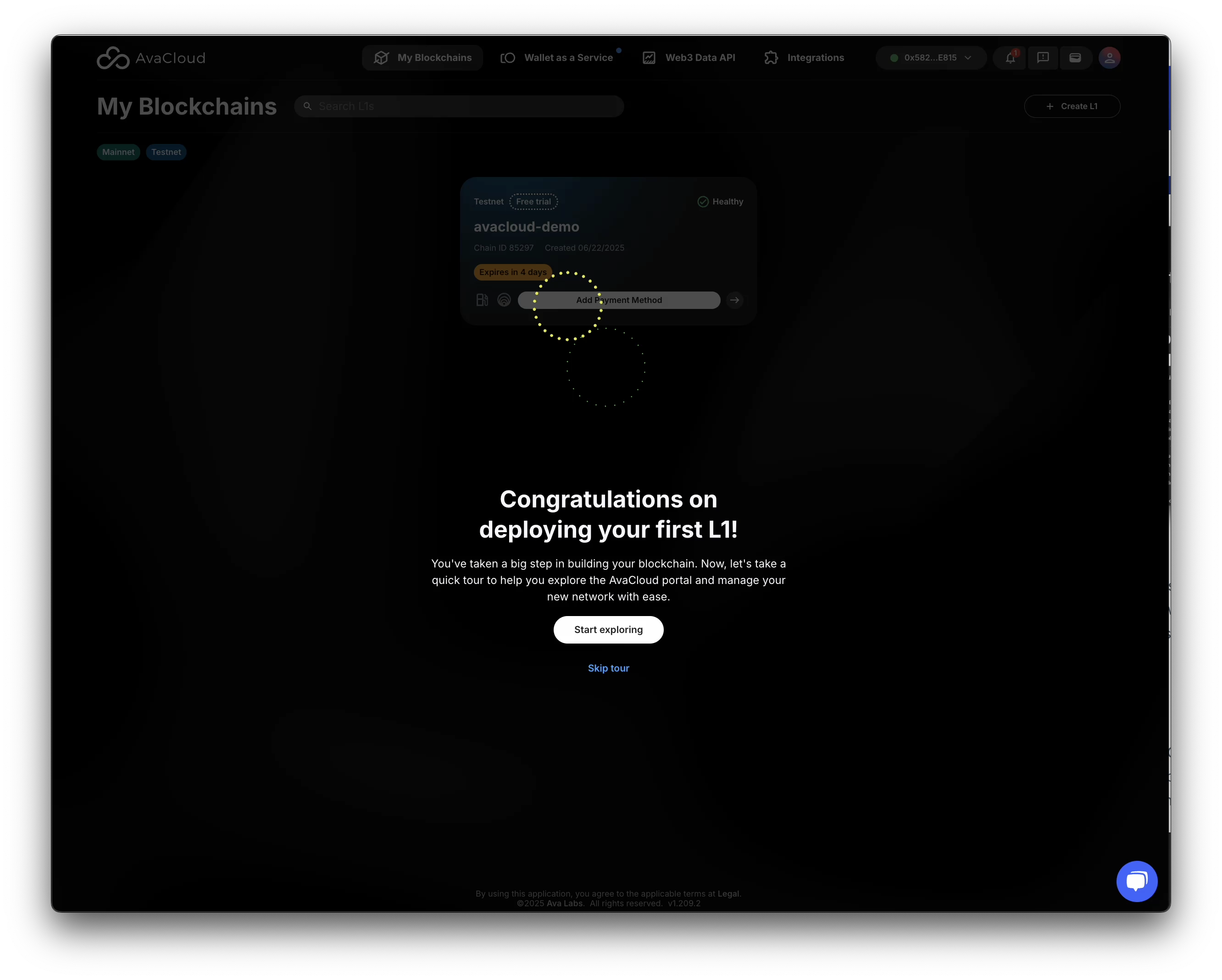 This guide explains how to create an Avalanche L1 on Testnet using the free trial plan with the basic setup option.