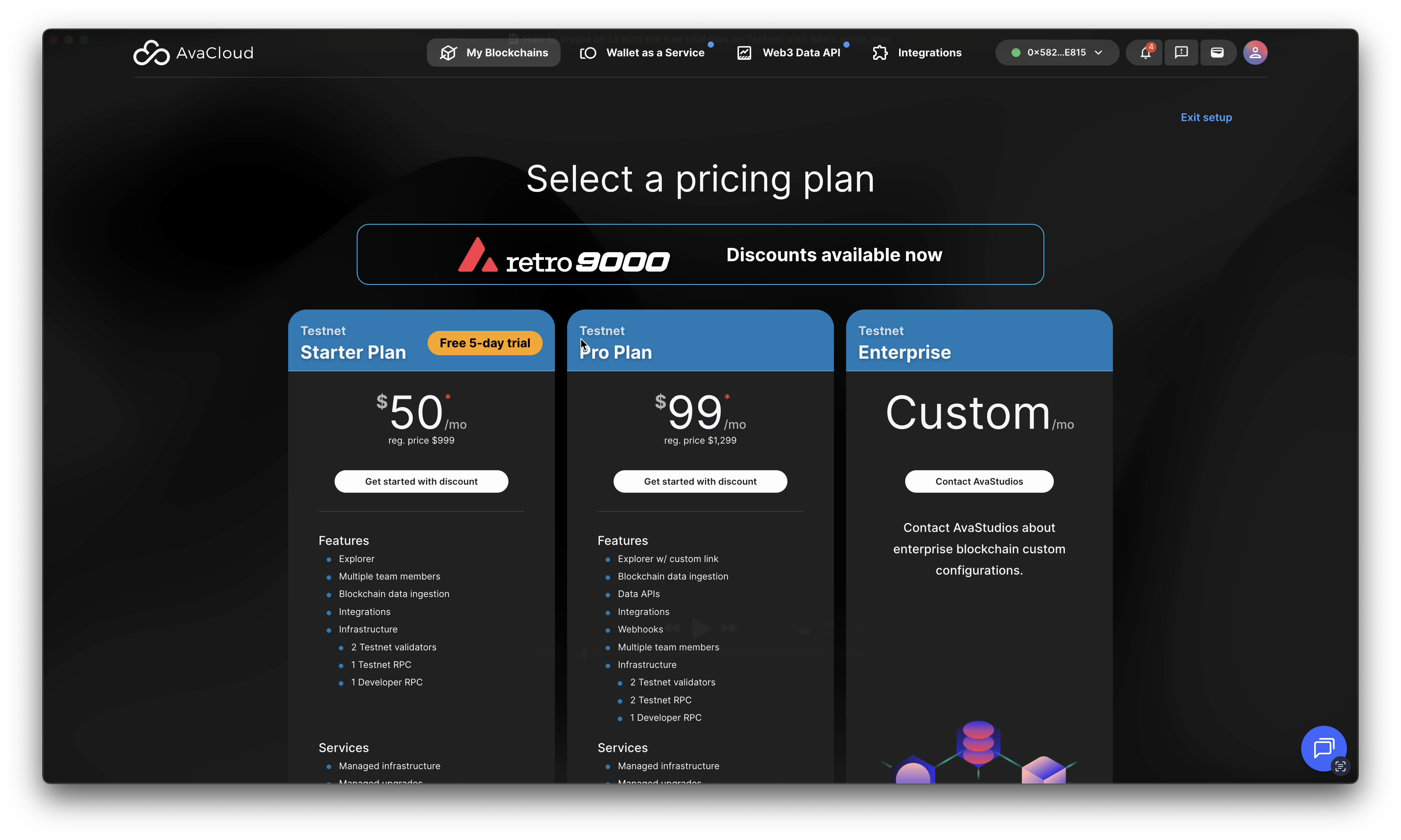 - You will see three options: Testnet Starter, Testnet Pro, and Testnet Enterprise.