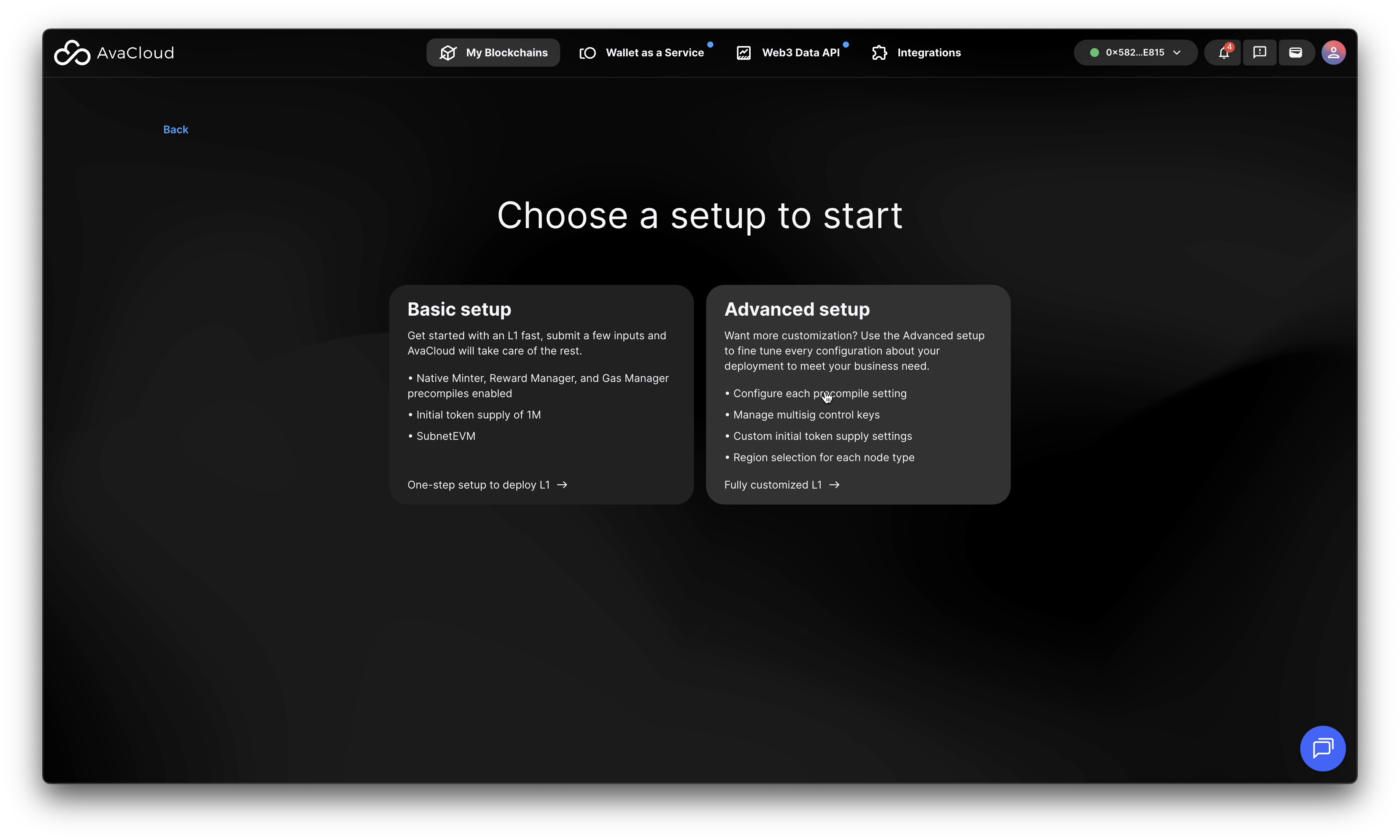 - Go to the L1 creation page in the AvaCloud Portal by clicking on