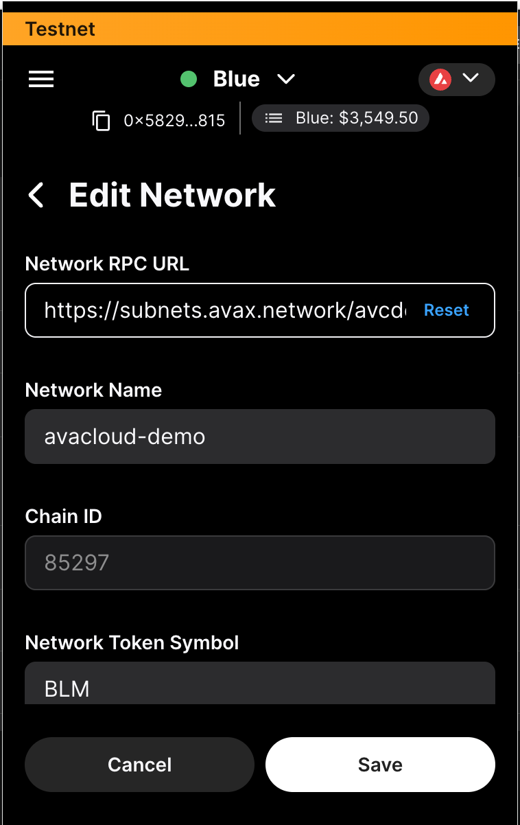 Replace the “Network RPC URL” value with the L1’s developer RPC. Click “Save” to confirm.
