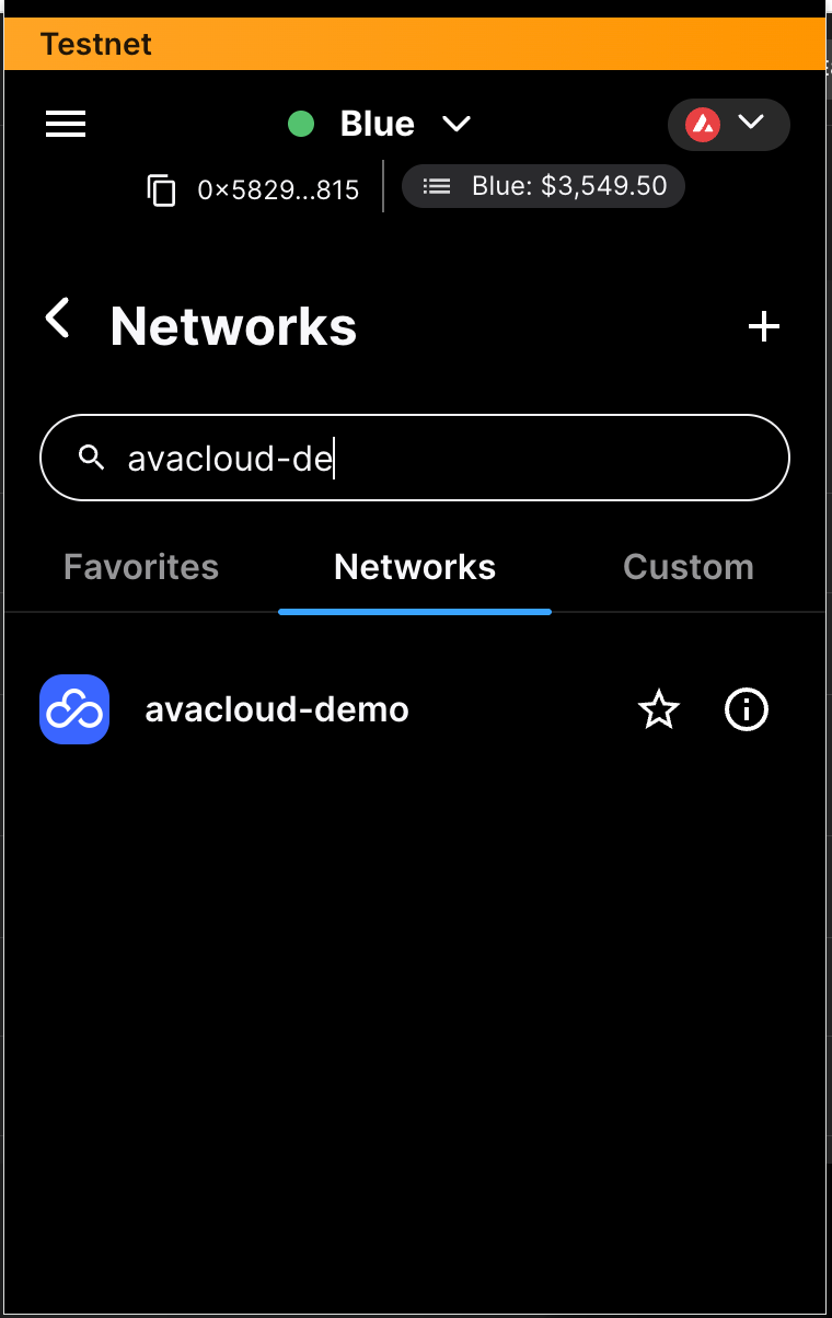 In the “Networks” tab, search for the L1’s name. On the L1, click the information “i” icon in the right: