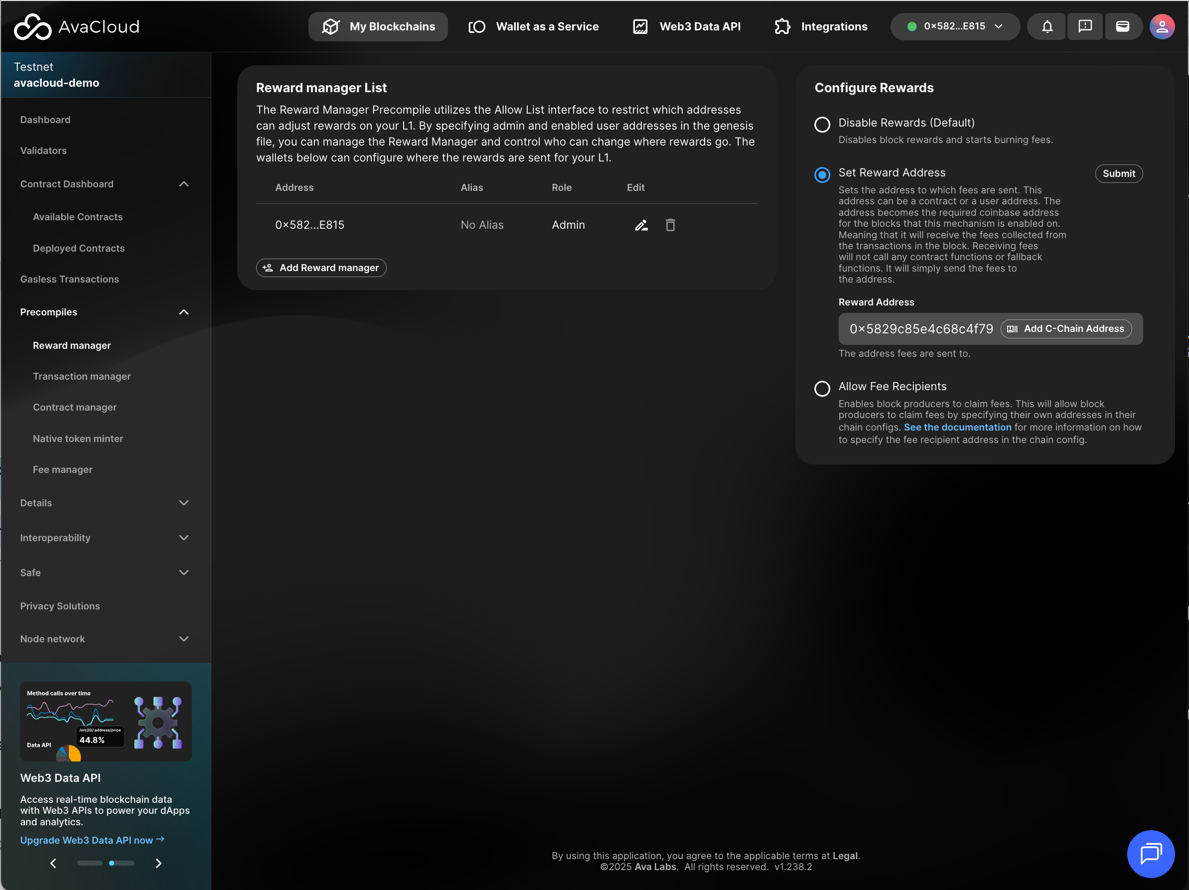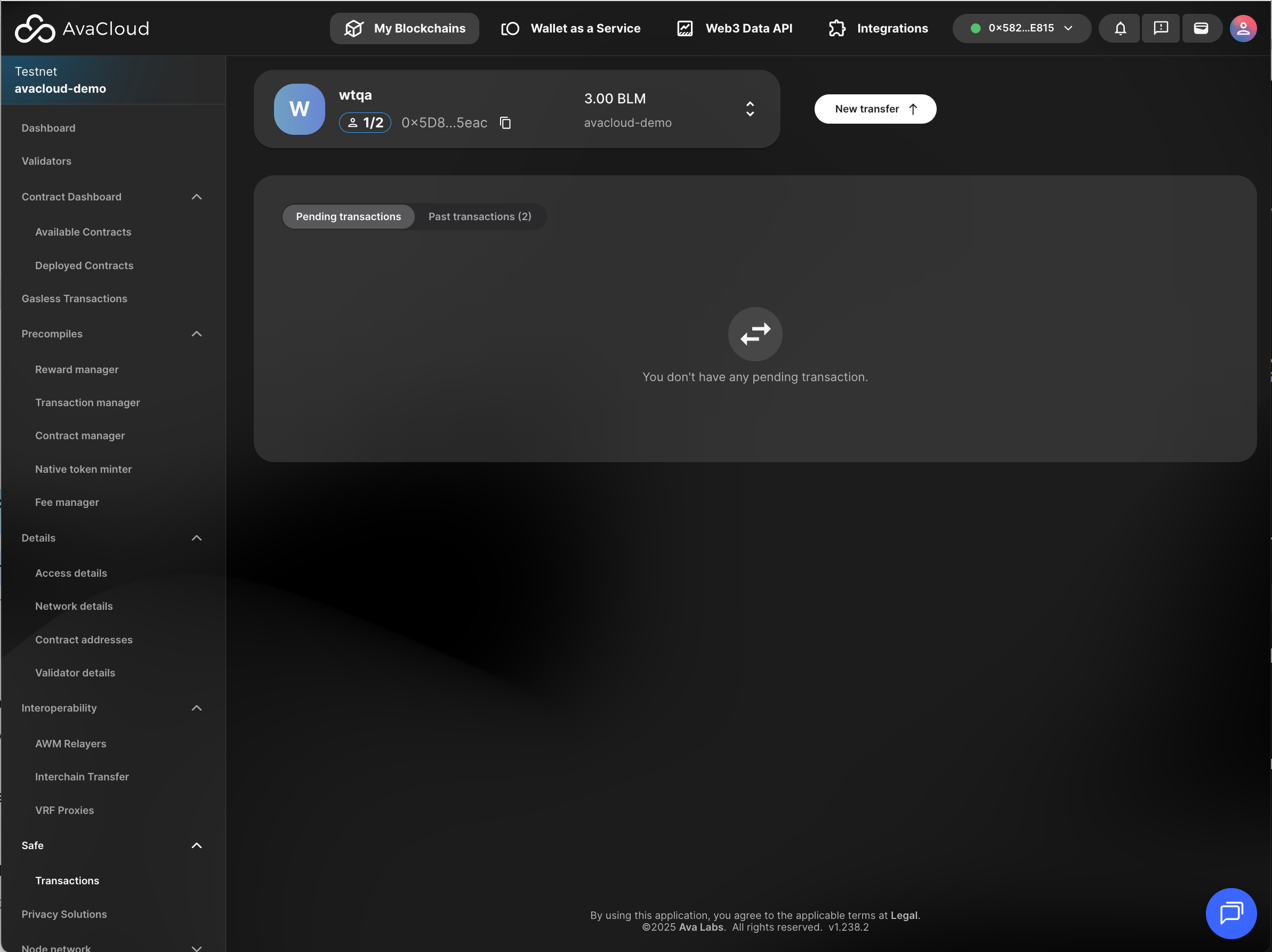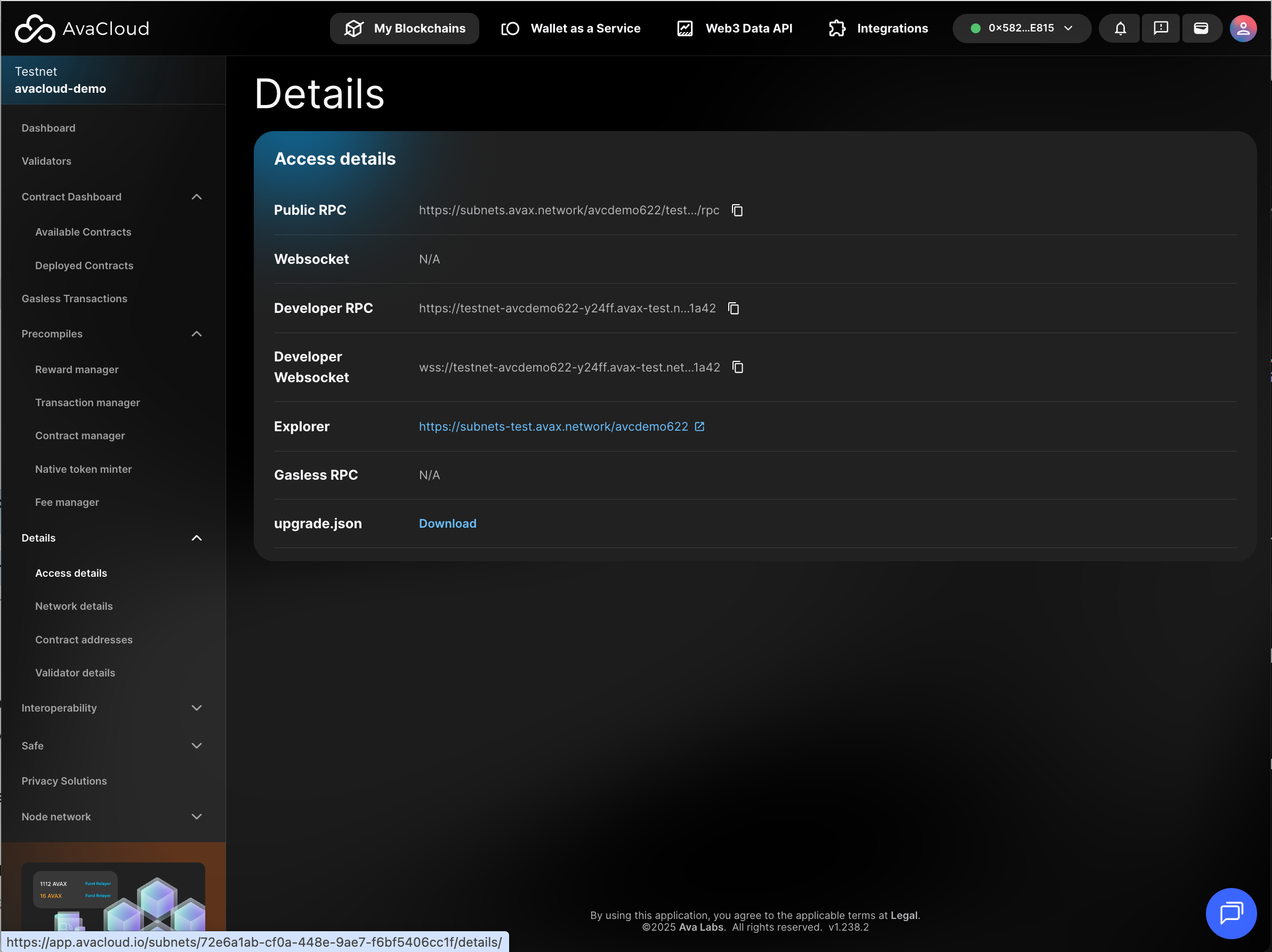 Review details for each validator node associated with your L1. You’ll also find controls for transferring ownership of the validator manager and proxy admin here.