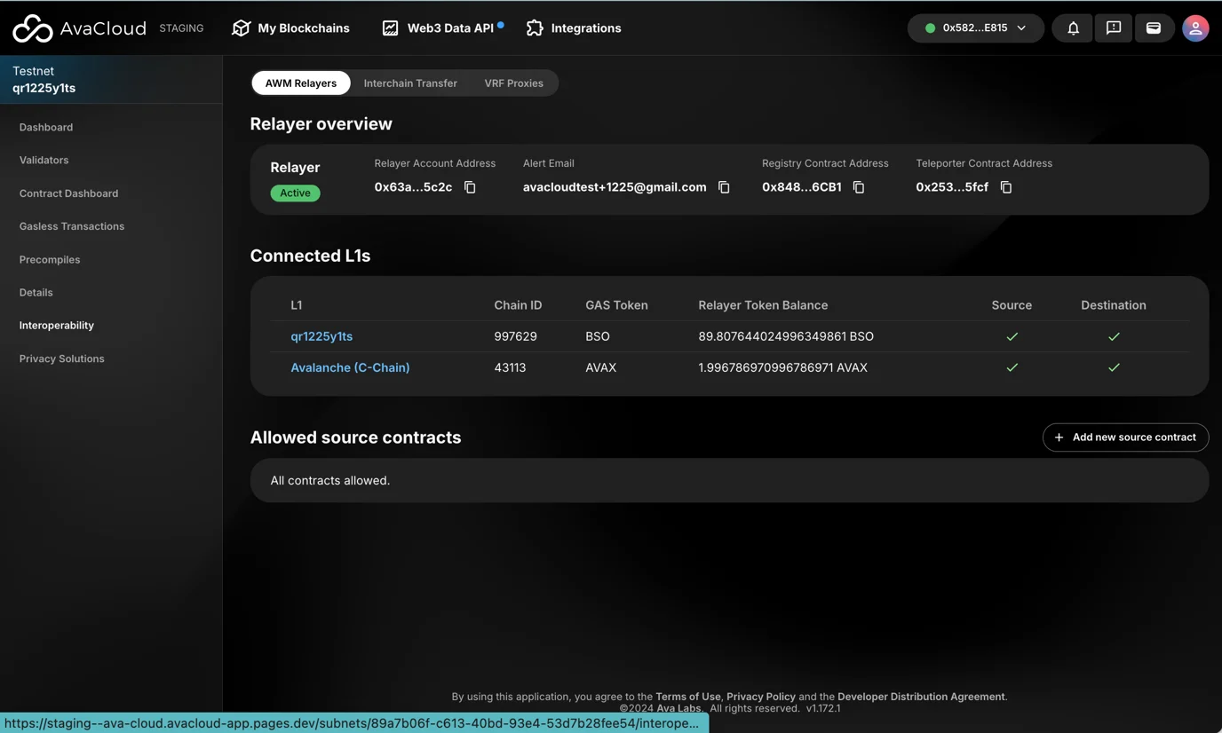 Access and configure interoperability features, such as cross-chain communication and token transfers. For more details, see the interoperability documentation.