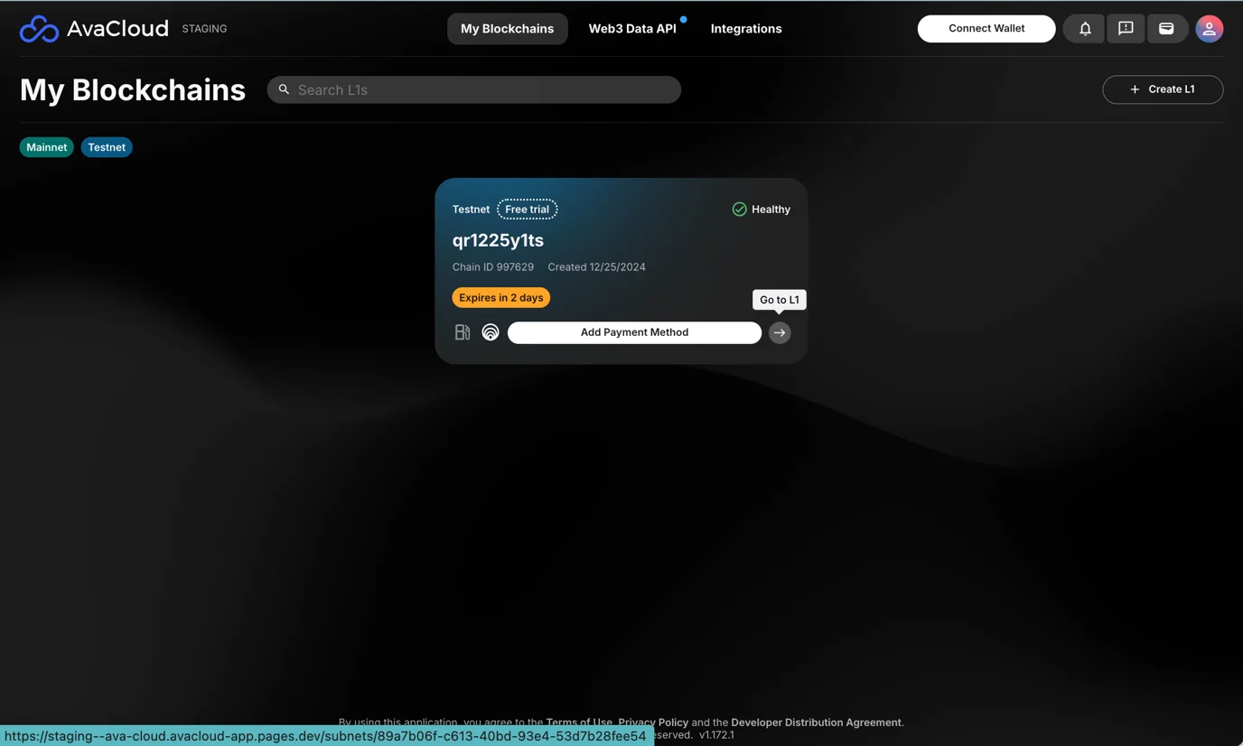 - You must have already created an L1. For instructions, see how to create an L1 with the free trial or how to create an L1 with Starter/Pro plan