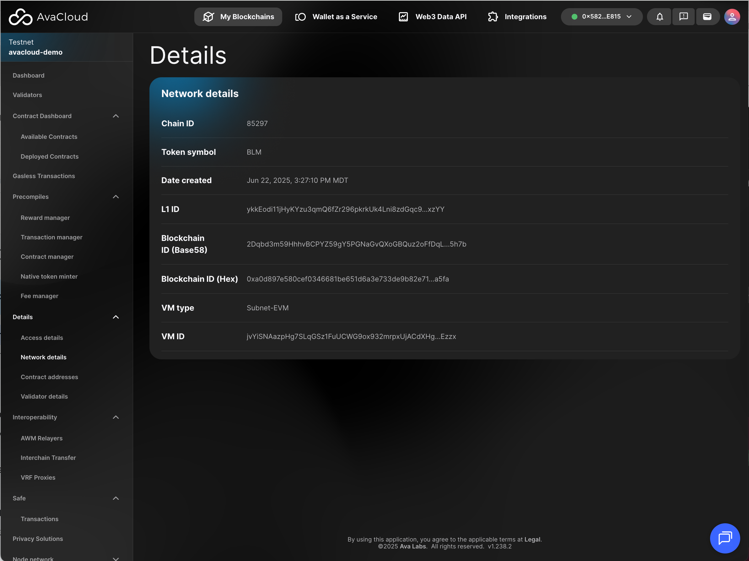 This tab presents a summary of your L1’s key information, such as its operational status, recent activity, and important metrics.