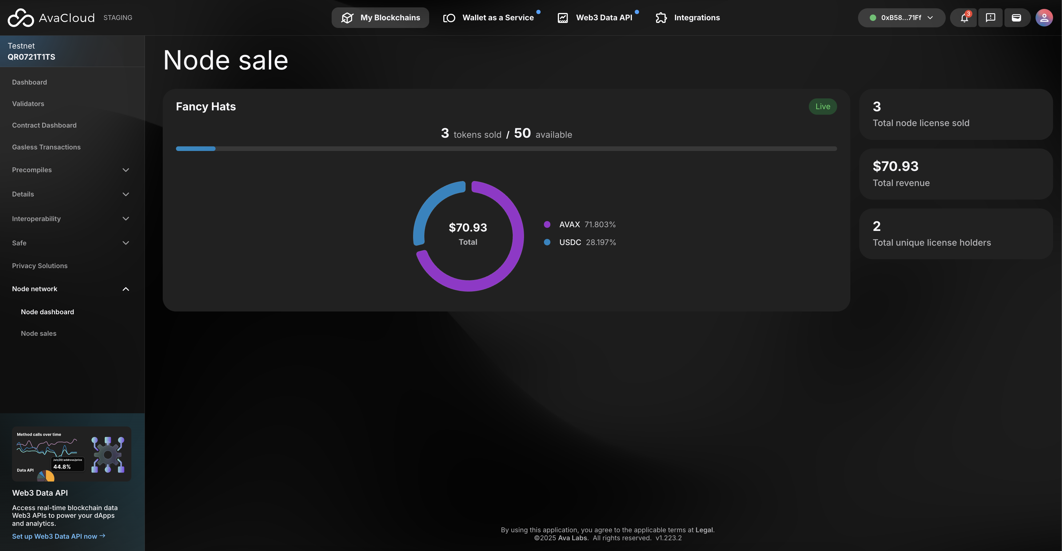 Metrics can be seen for an active node sale by going to the node dashboard.