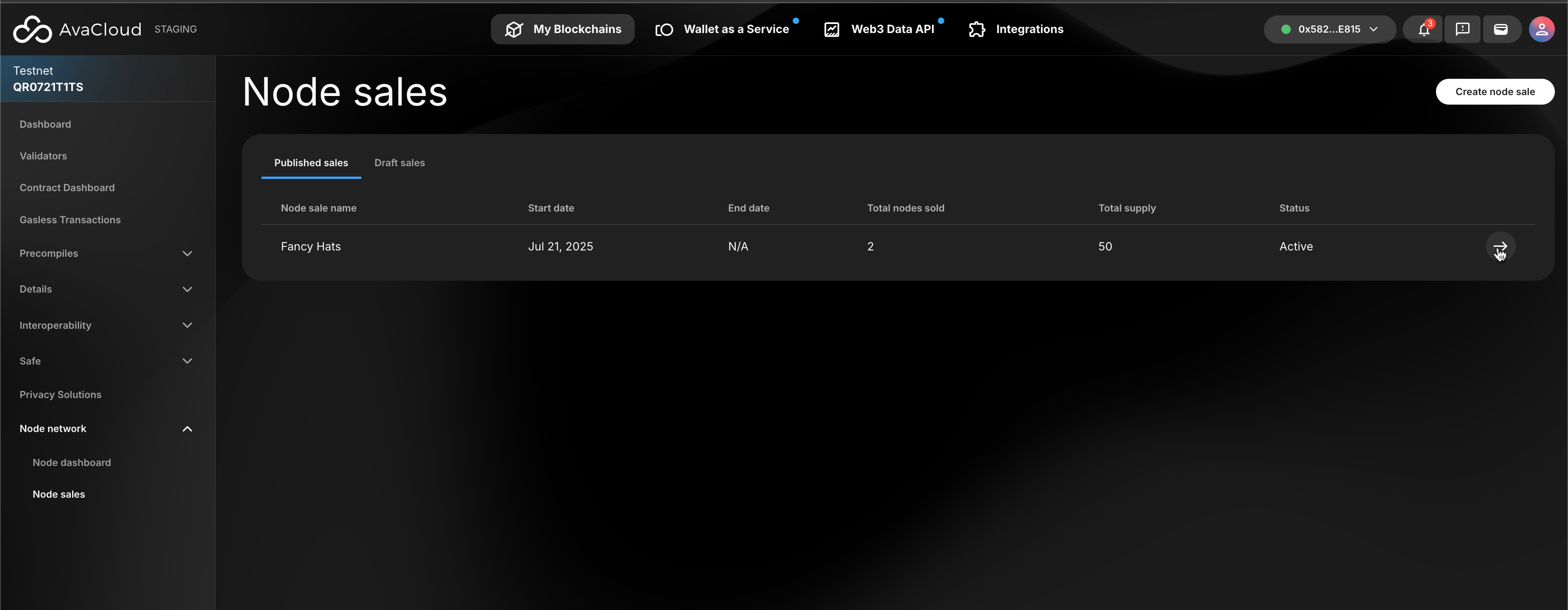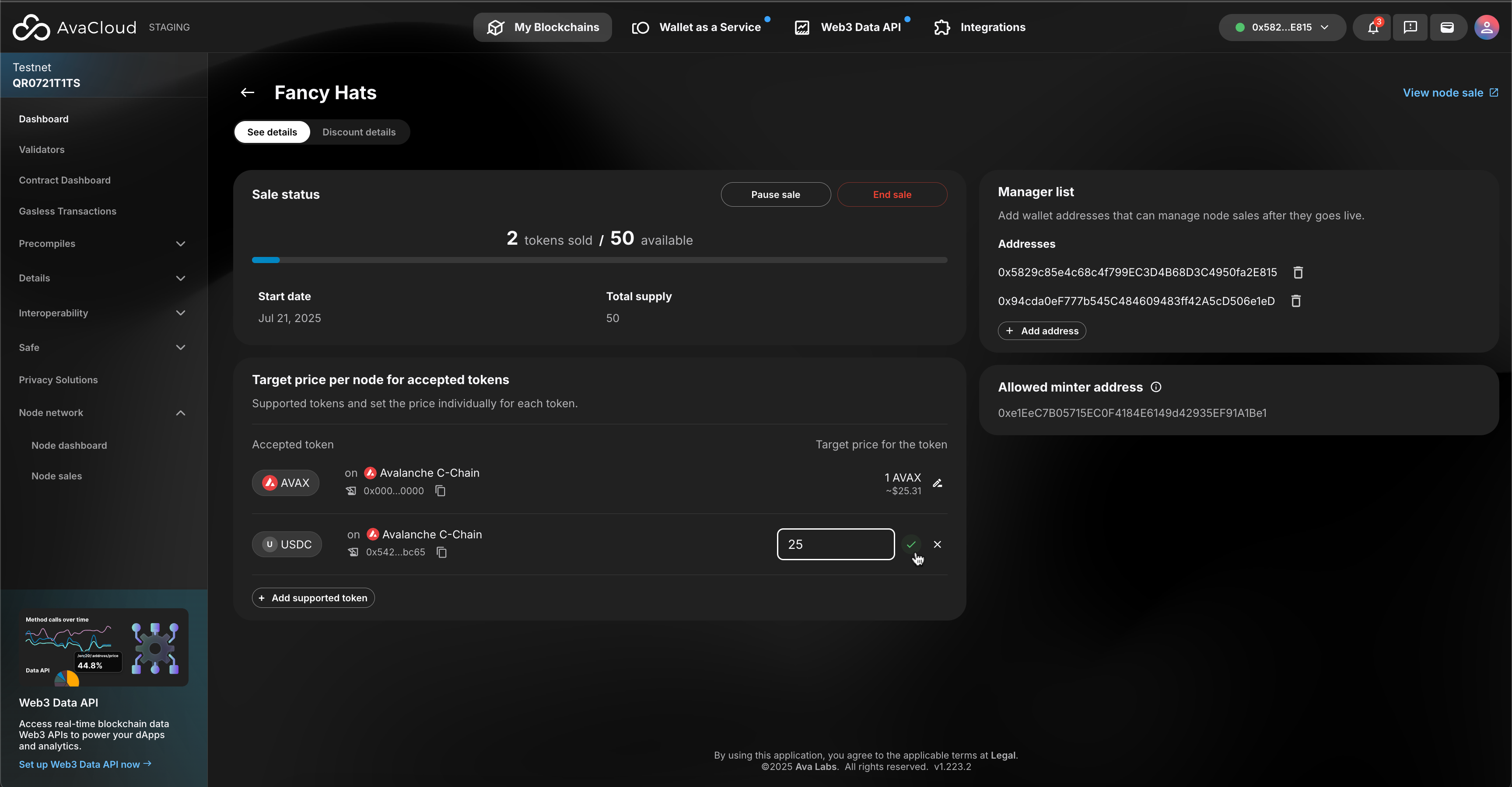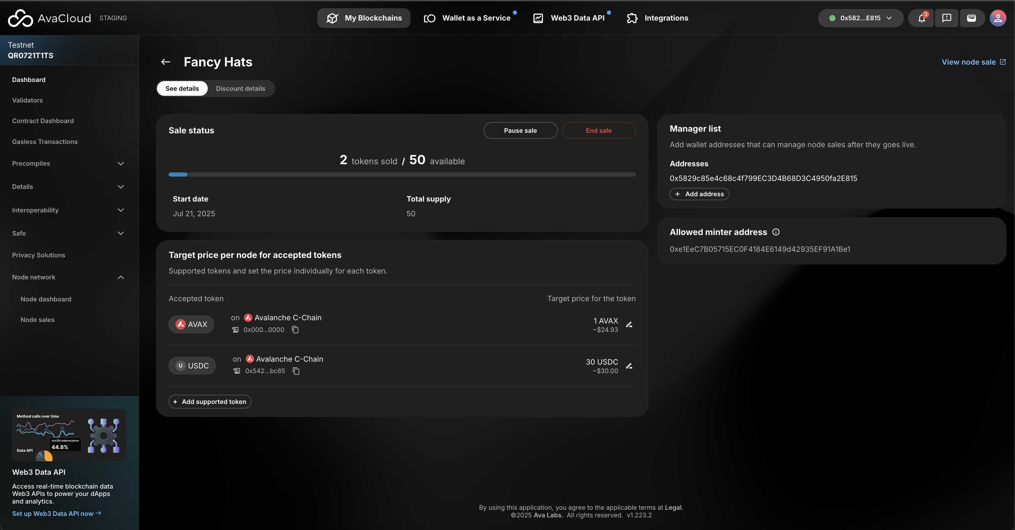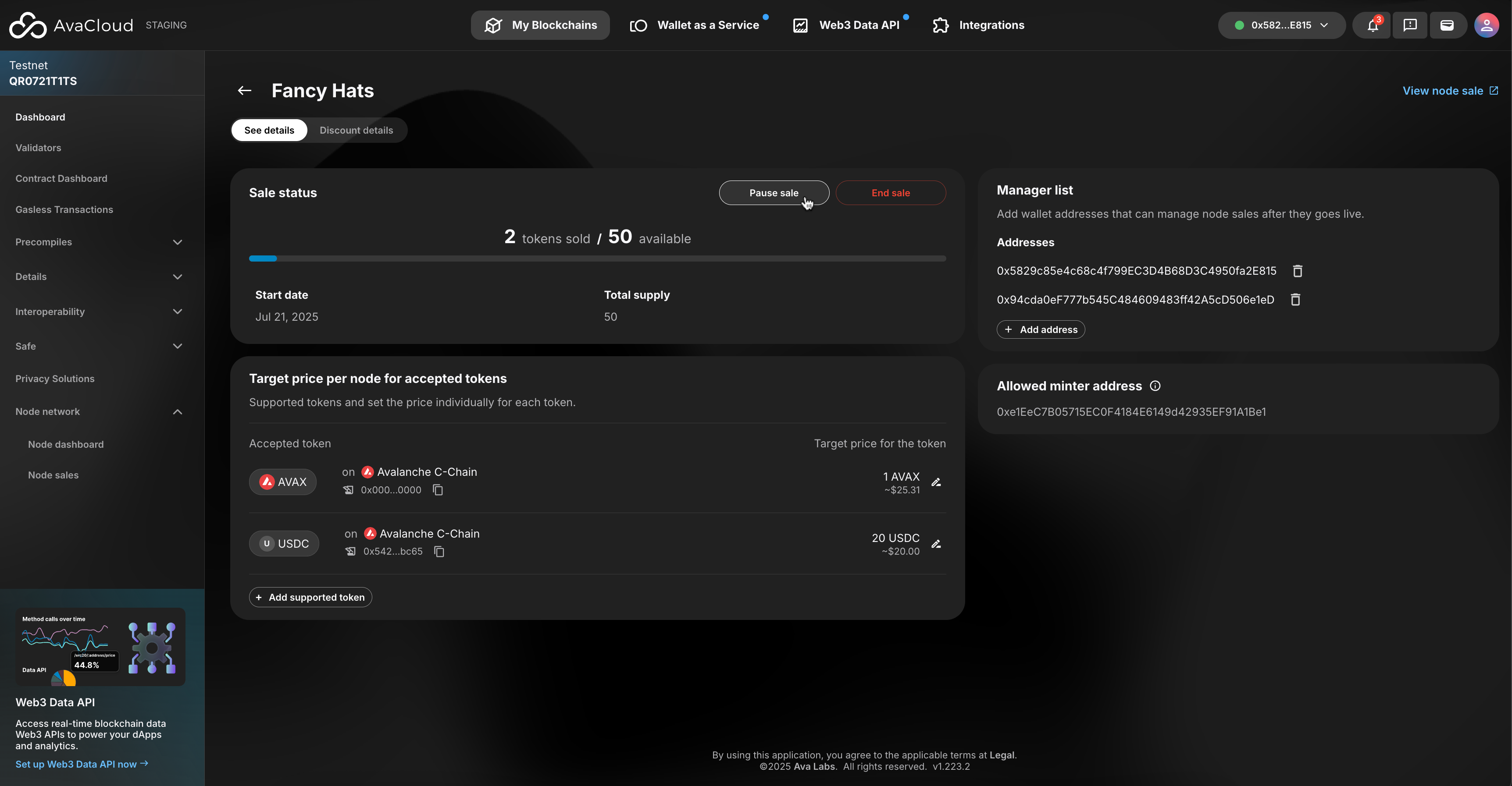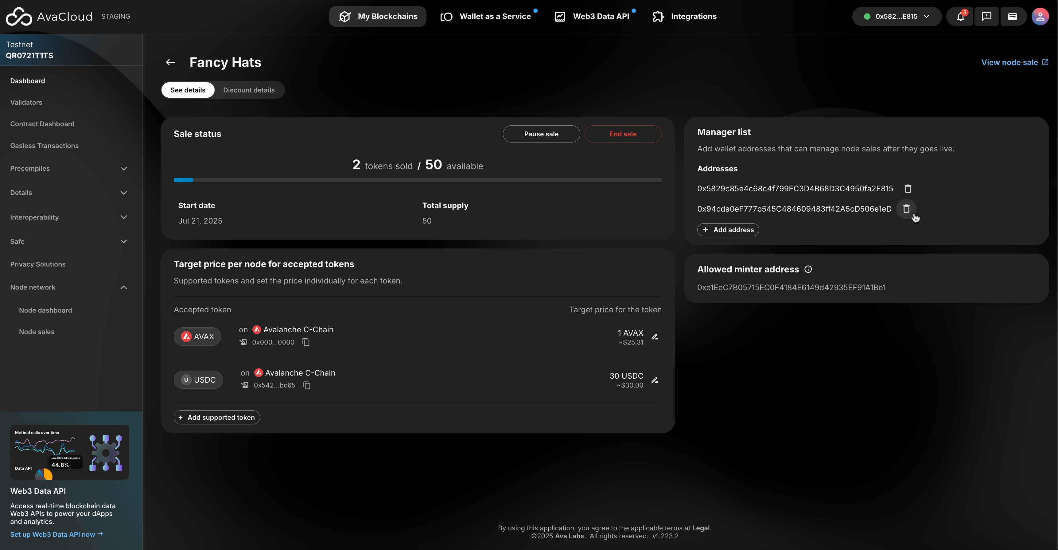 - End sale: ends a node sale, marking it as completed on AvaCloud and LaunchPad
