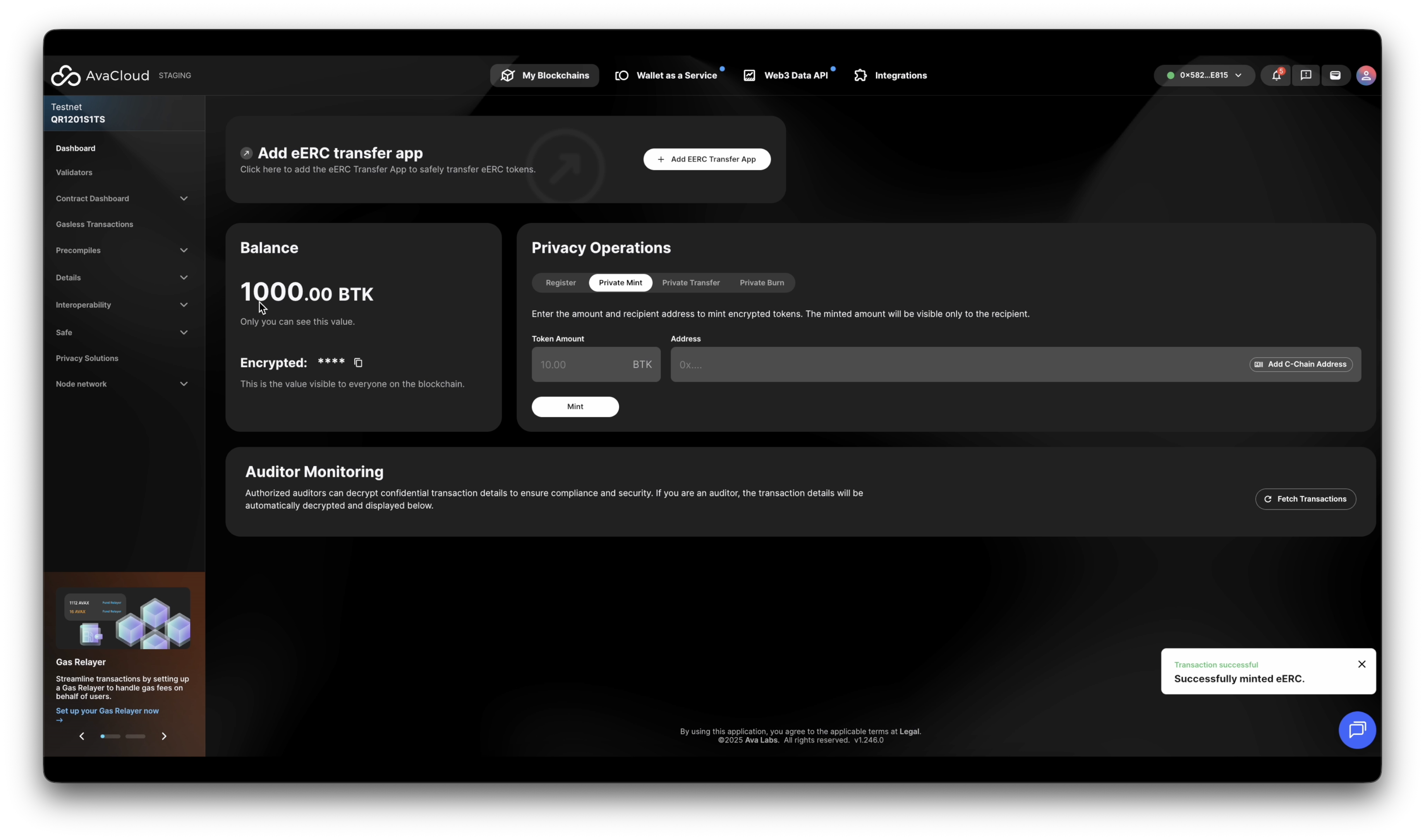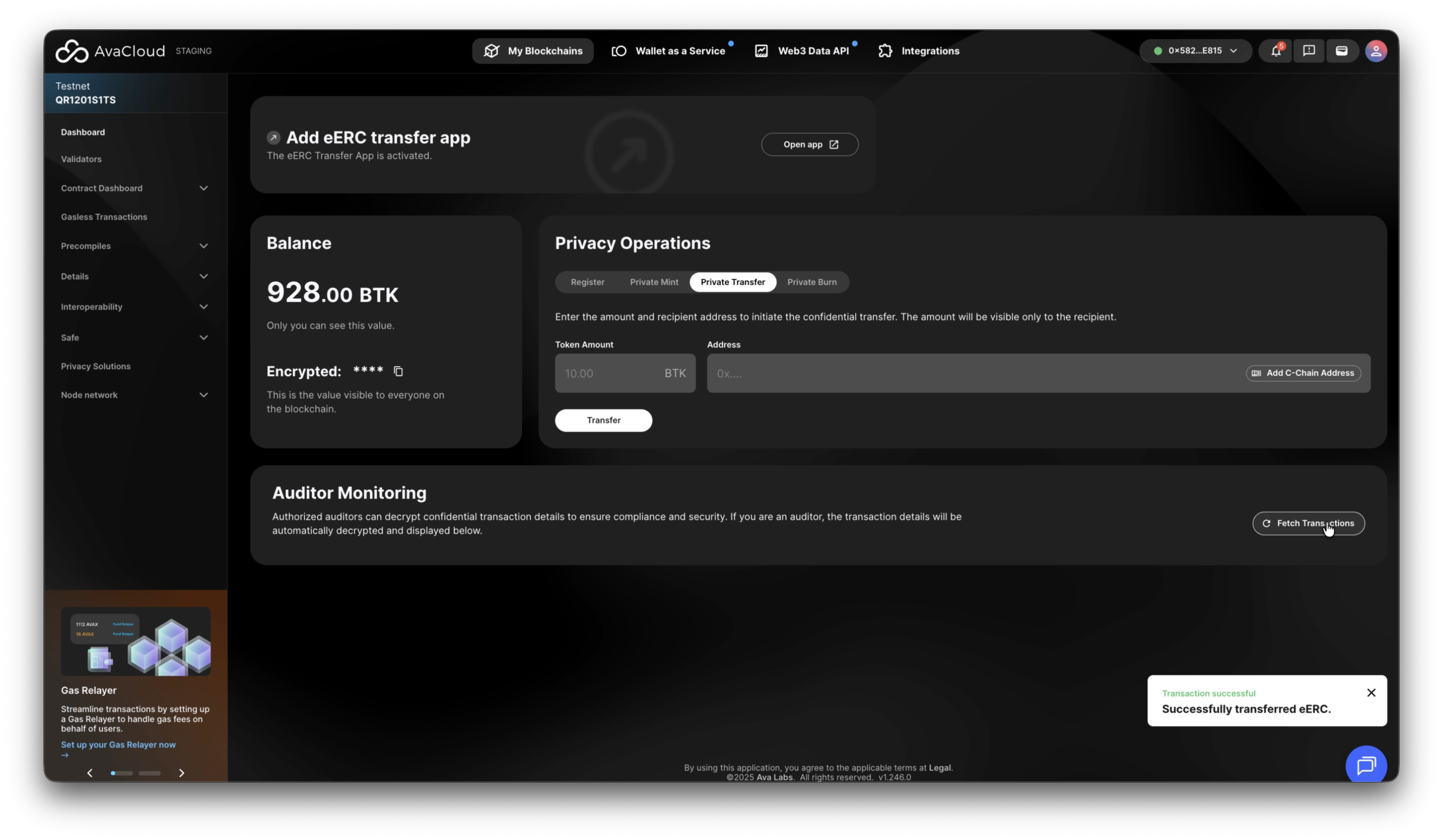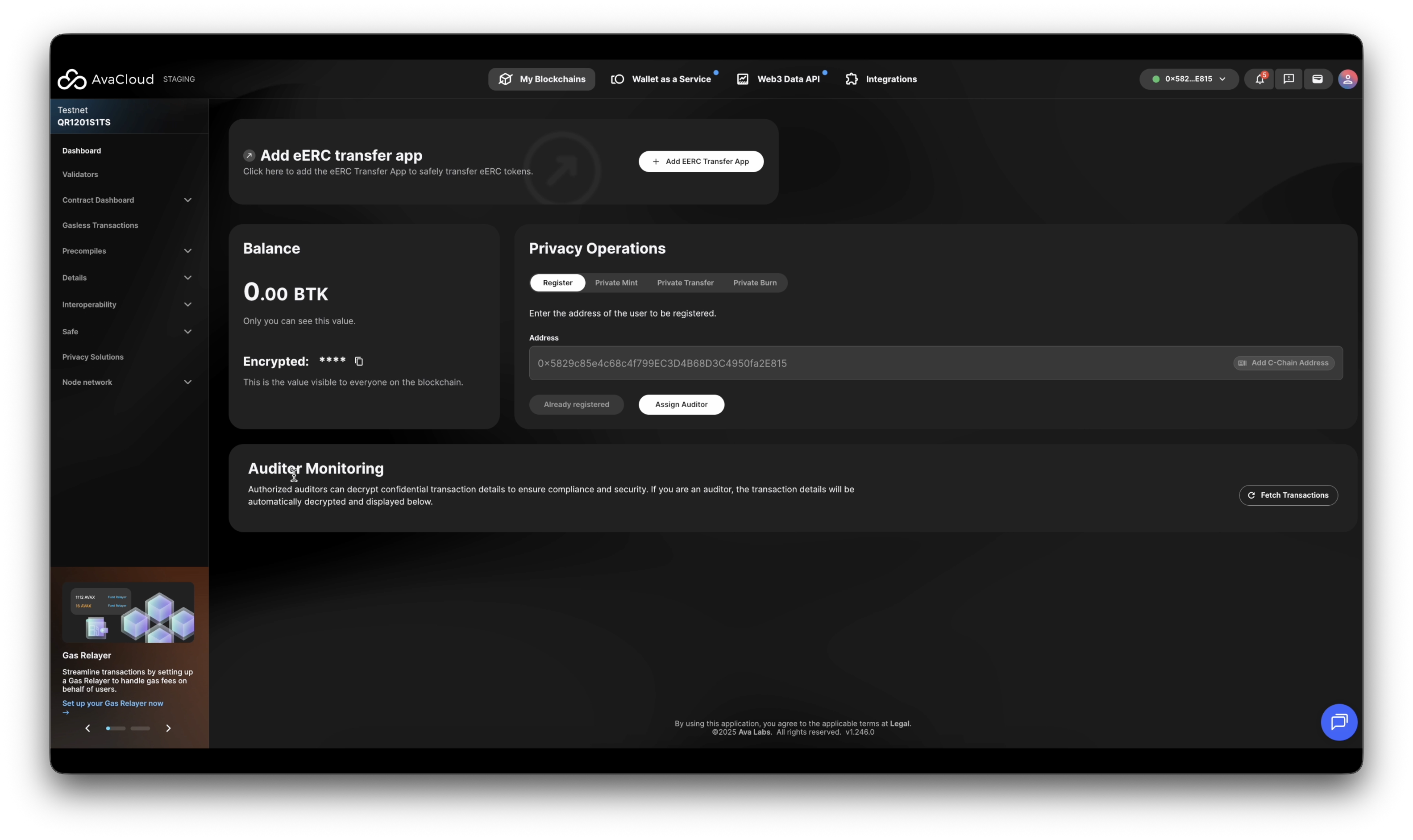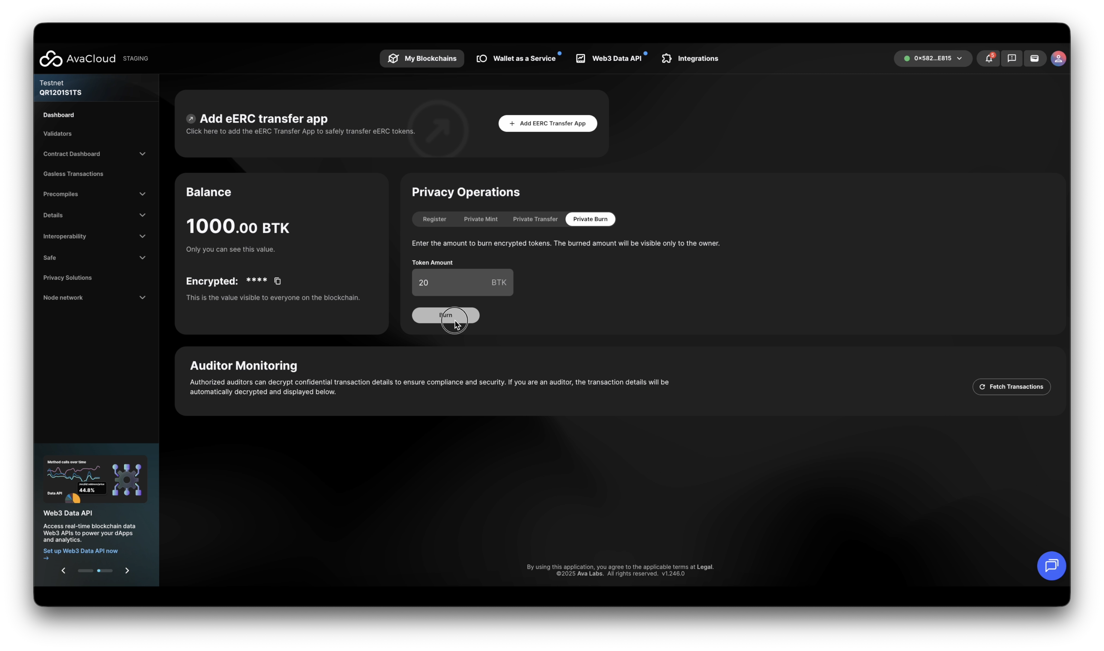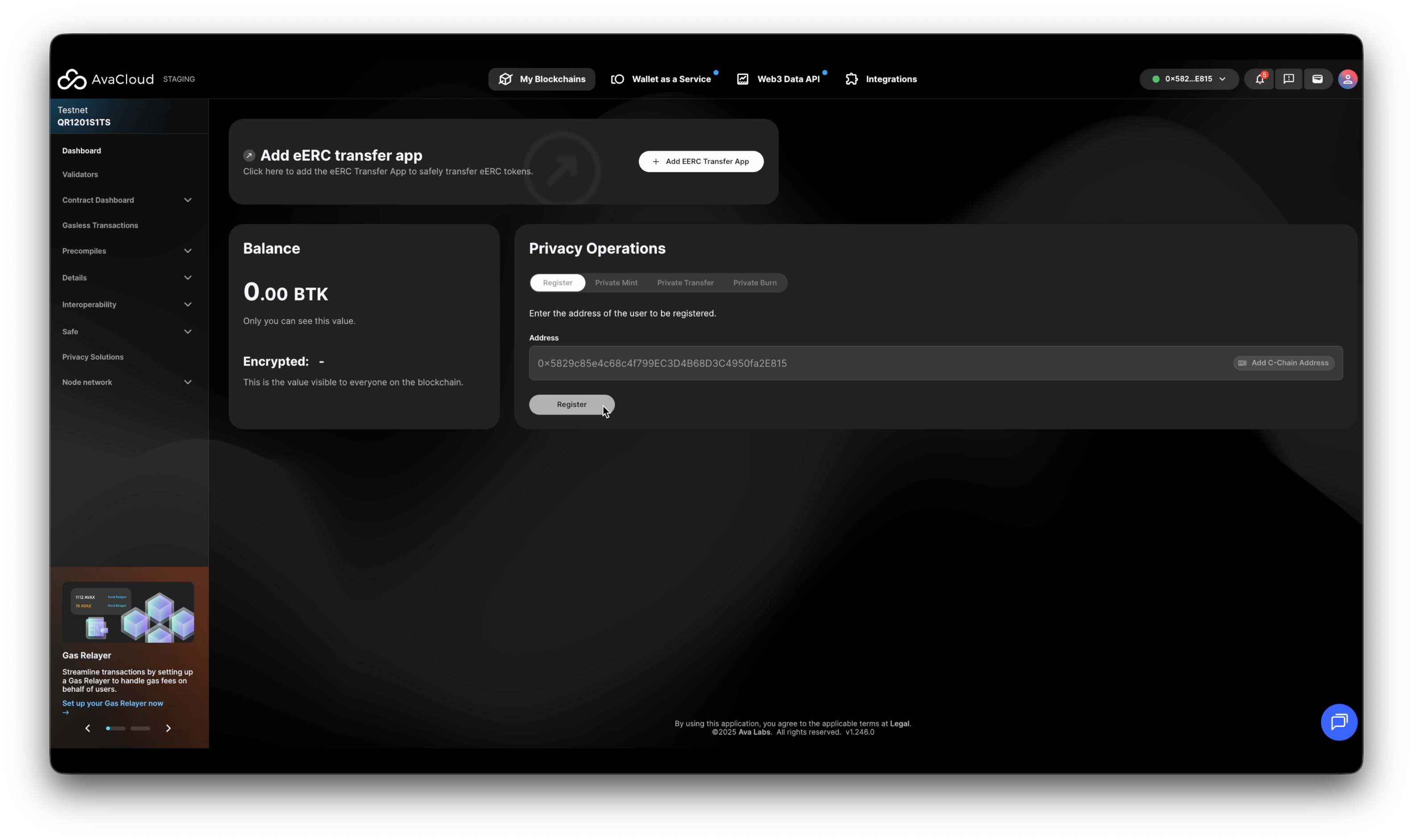 This guide walks you through all supported operations on an Encrypted ERC (eERC) token via the AvaCloud Portal.