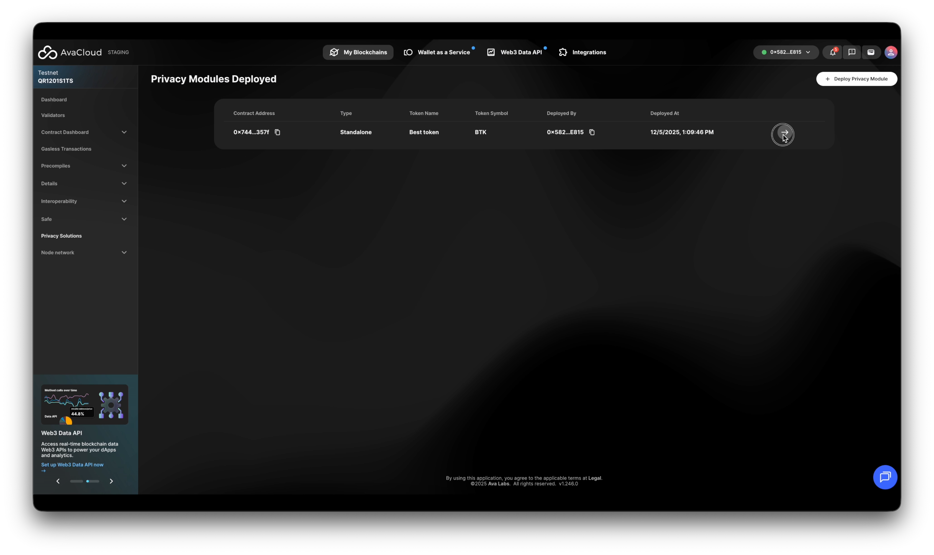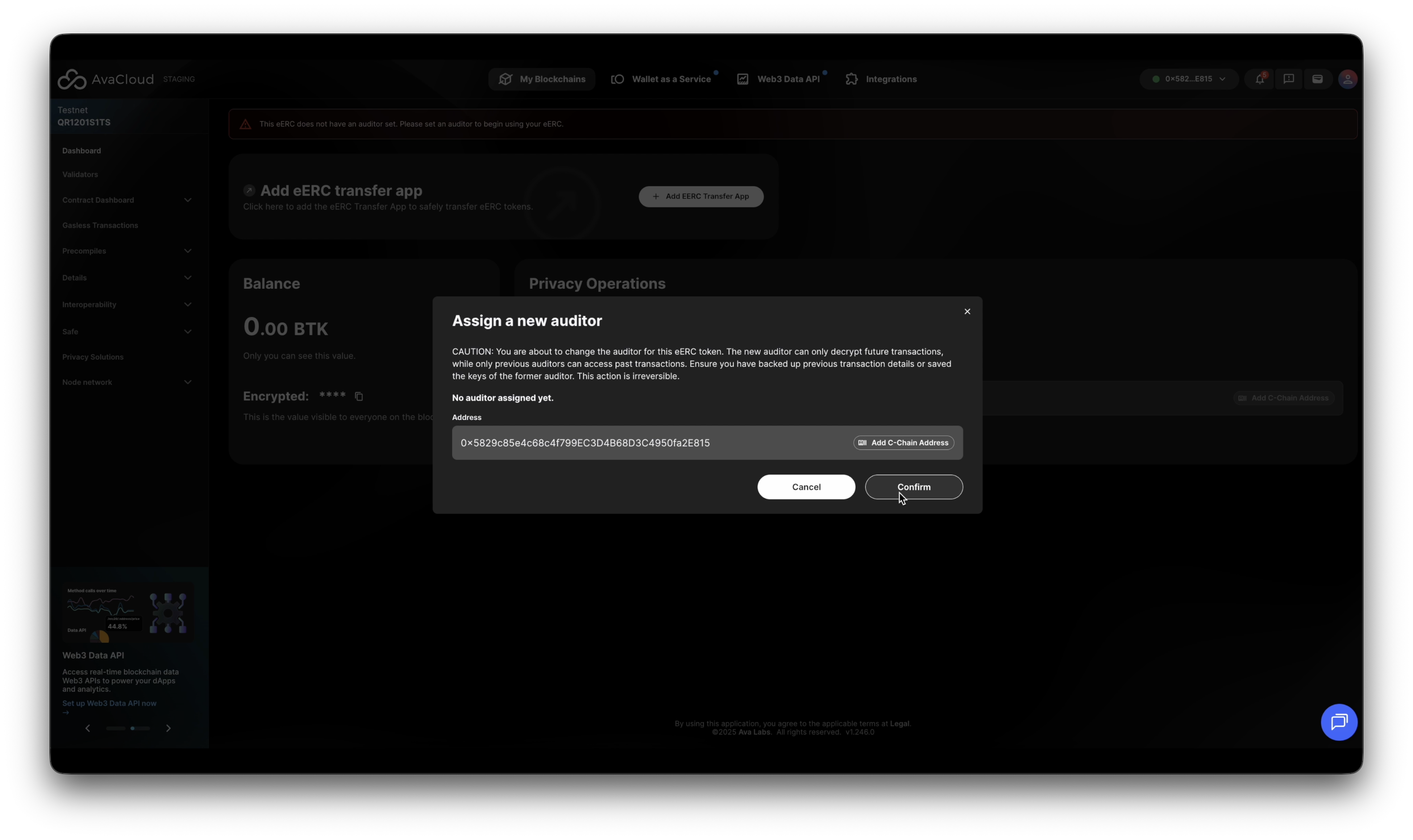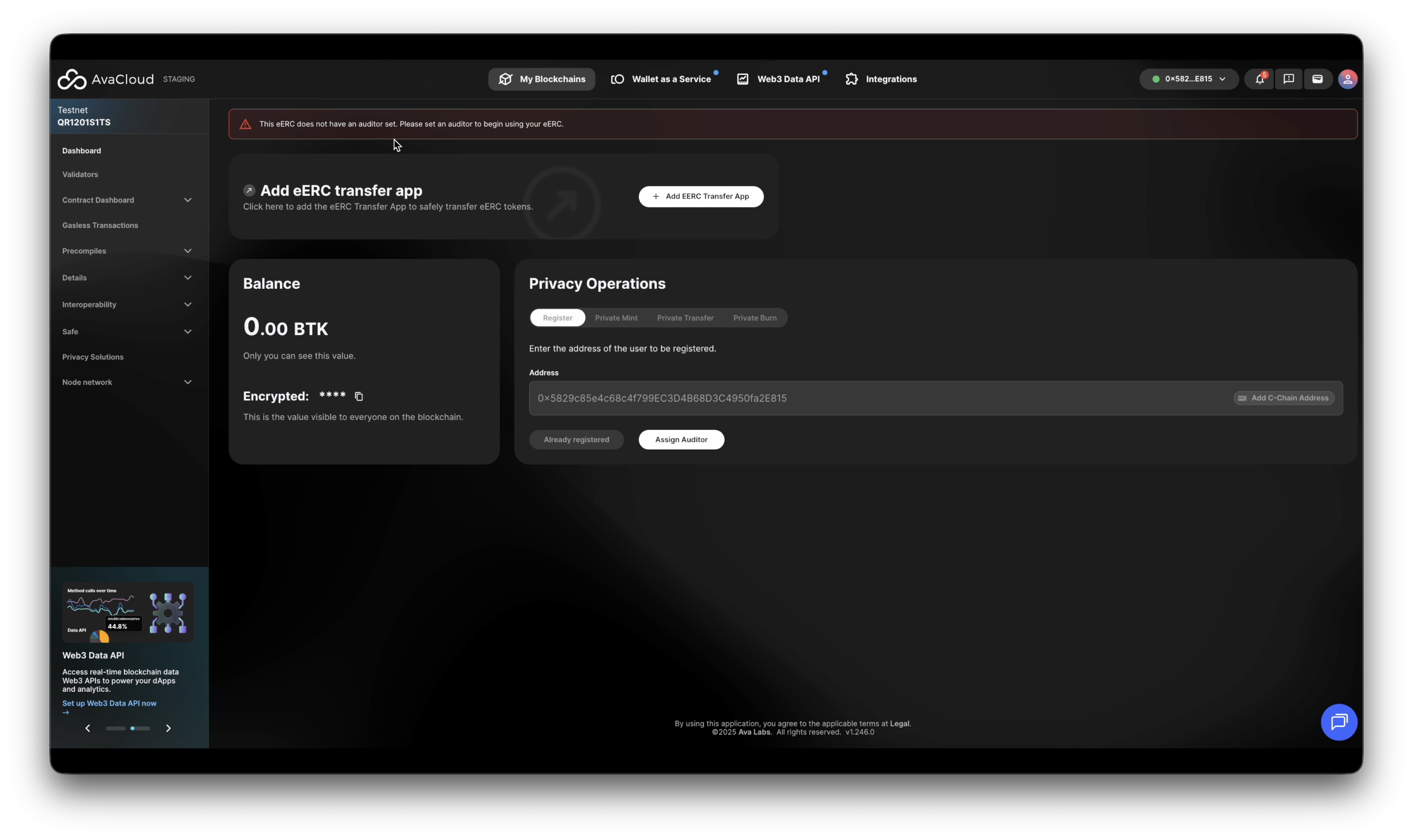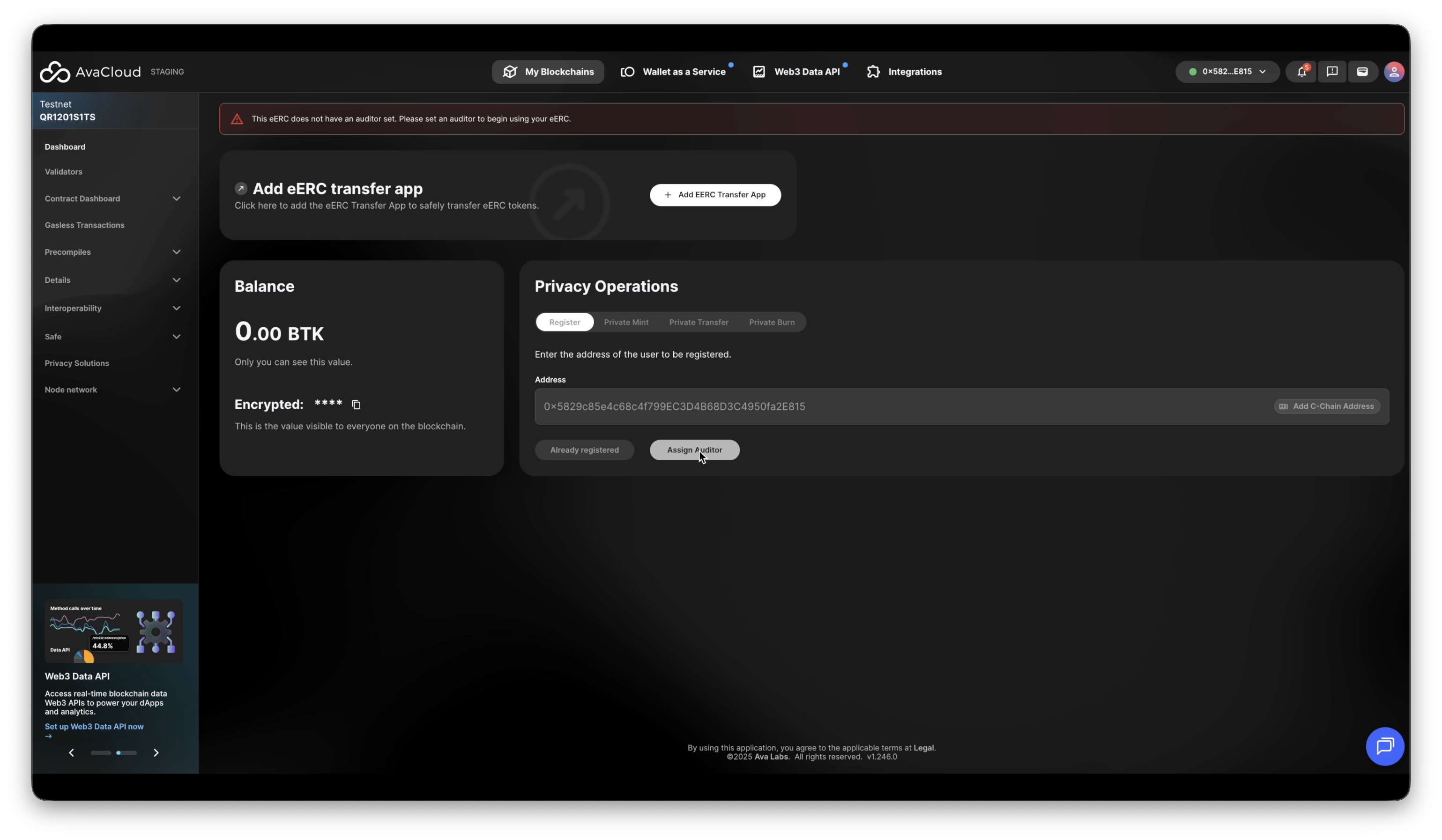 This guide walks you through all supported operations on an Encrypted ERC (eERC) token via the AvaCloud Portal.
