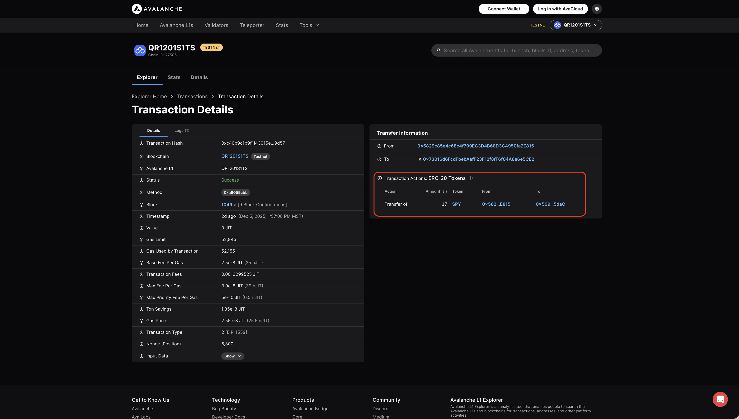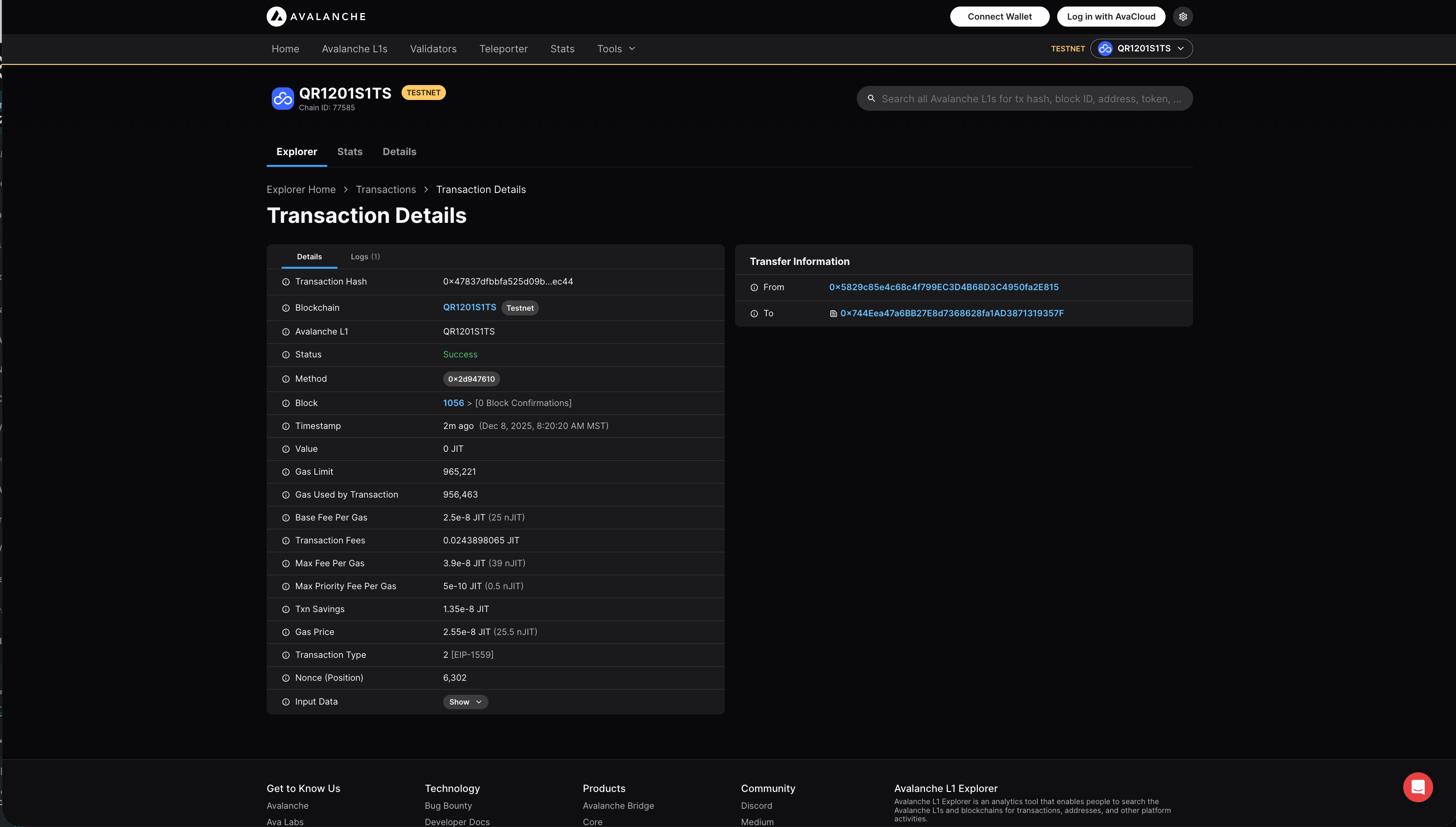 View transaction on Explorer